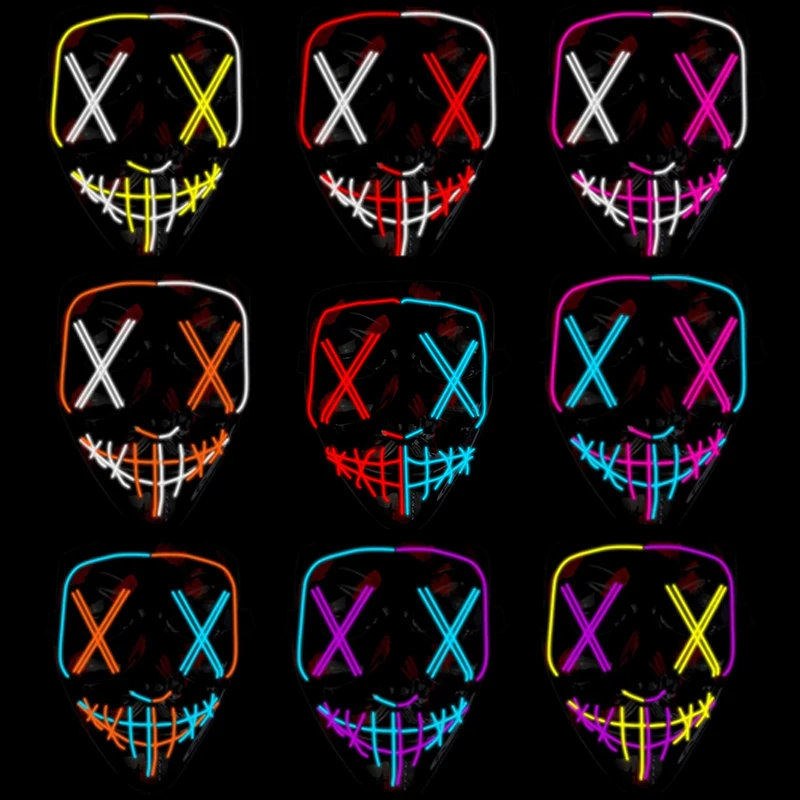 Sem fio led purga eleição ano máscara halloween páscoa assustador legal máscara decoração halloween purga rímel vermelho purga led máscara