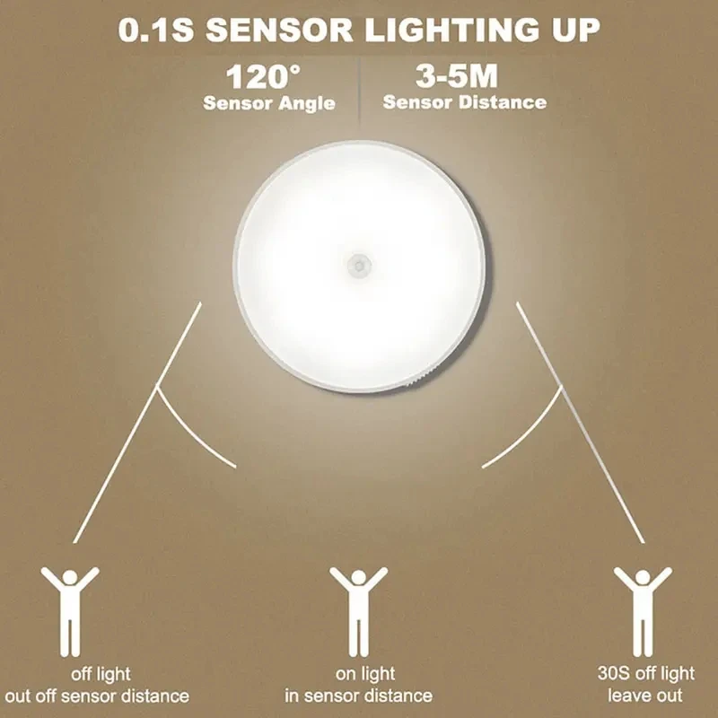 Sensor de Movimento Luz Noturna Sem Fio, Lâmpada Detector LED, Quarto, Escada, Armário, Decoração do quarto, 1Pc