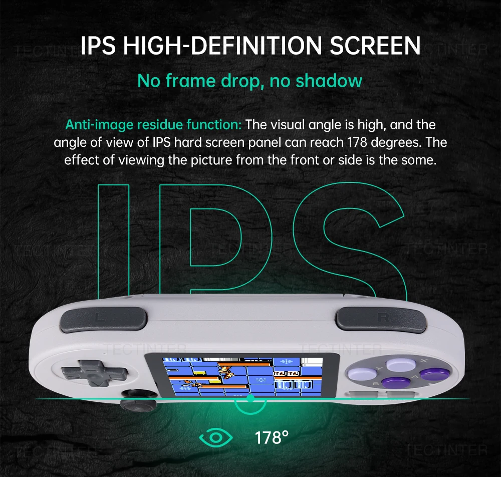 Este console de jogos portátil possui joysticks clássicos separados nos lados esquerdo e direito.É feito de material exclusivo de alta qualidade que pode controlar casualmente o ritmo com 0 zonas mortas, permite que você mergulhe no mundo clássico e emocionante dos jogos e desfrute de uma ótima experiência.