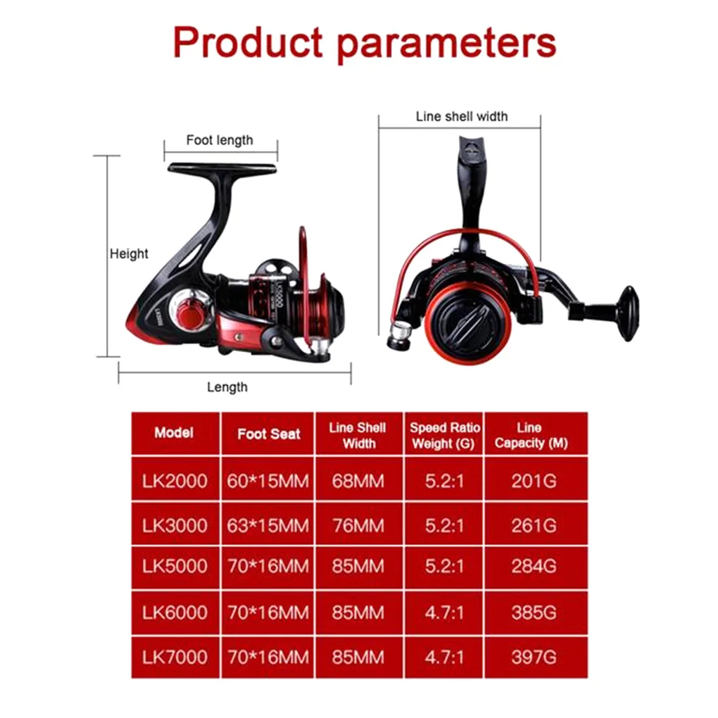 Adota material superior, o carretel de pesca é duradouro e não é fácil de ser danificado.