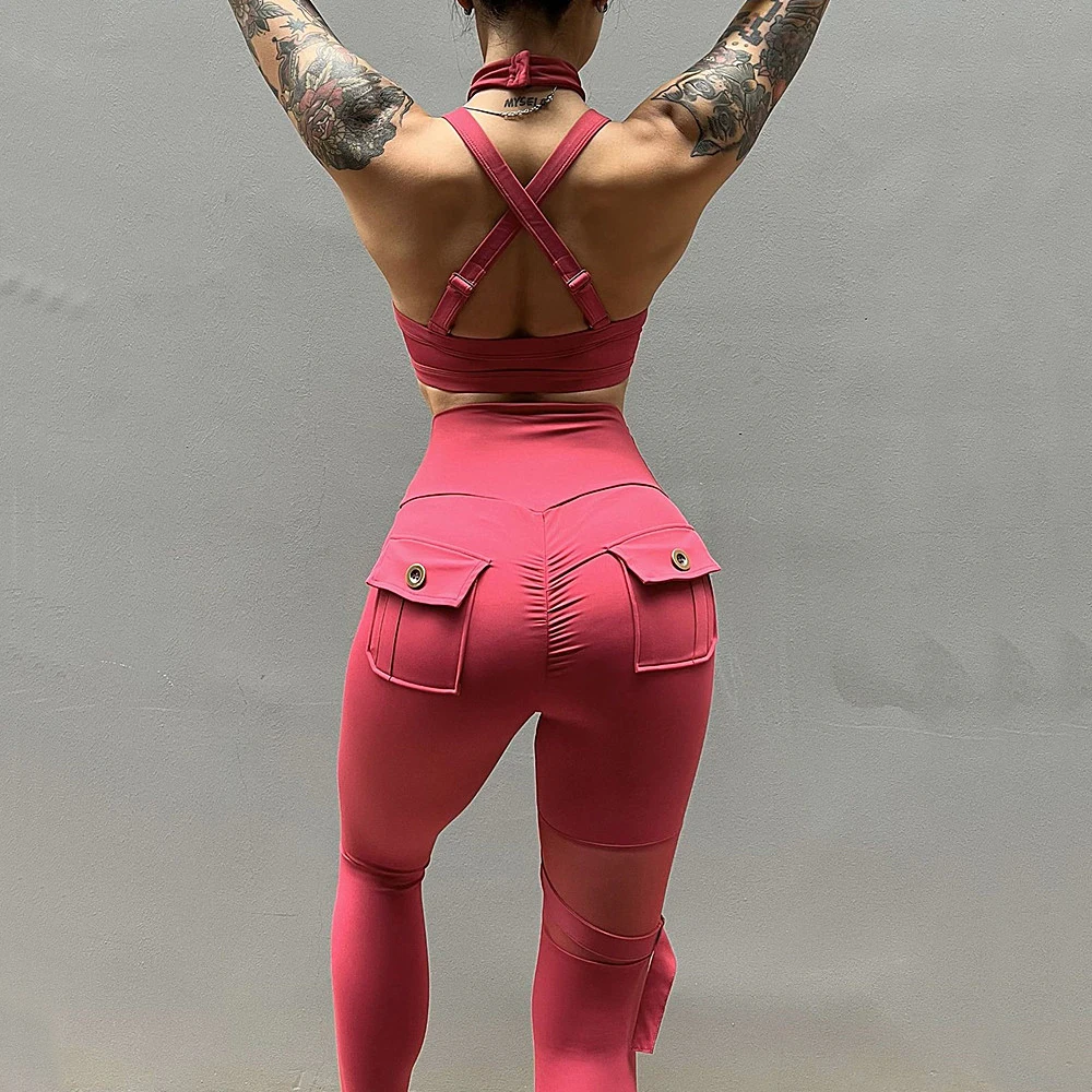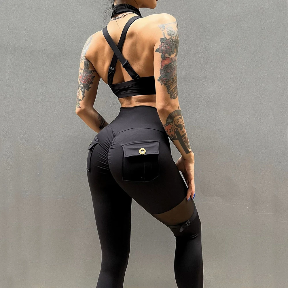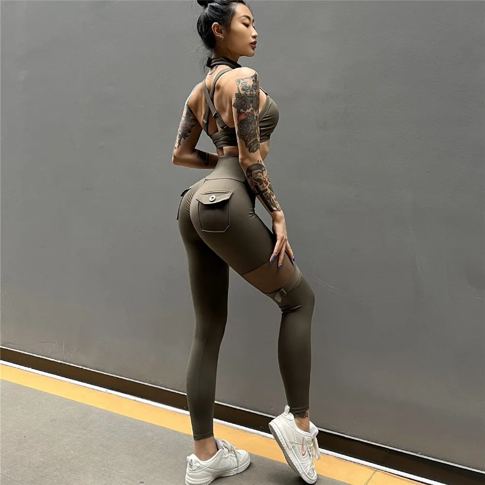 Shorts militares de cintura alta para mulheres, conjunto de ioga bandagem, treino ginásio de fitness sportswear, roupas esportivas, 1 2pcs, 2024