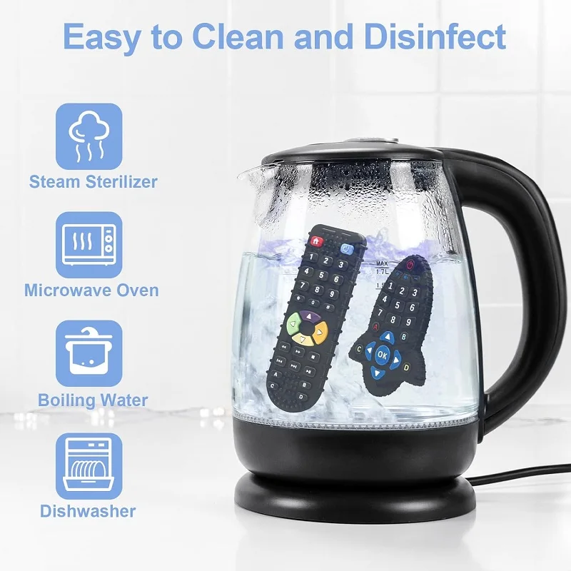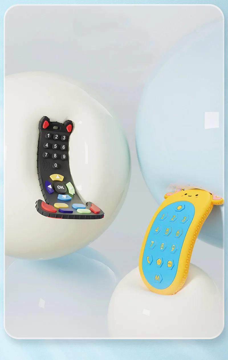 - > Silicone dentição anel com controle remoto para o bebê, brinquedos sensoriais para recém-nascido