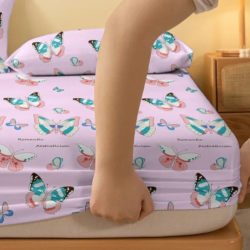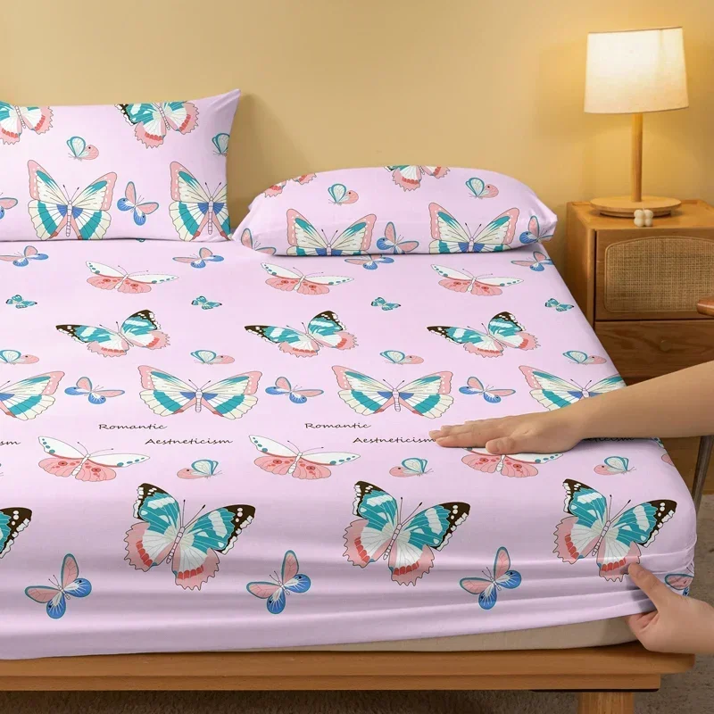 Simples e Moderno Borboleta Impresso Matte Lençol, Quarto Impresso Tampa de Cama, Cama (Excluindo Fronhas), 1