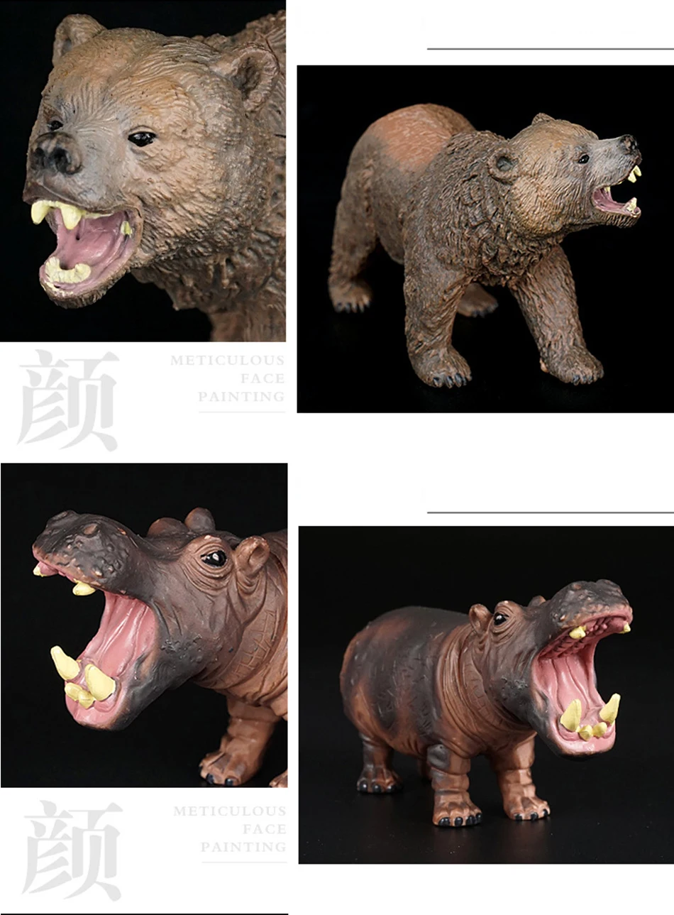 - > Simulação animal selvagem elefante leão graffe urso marrom figuras de ação vida selvagem sika veado hipopótamo zebra crocodilo estatuetas brinquedo do miúdo