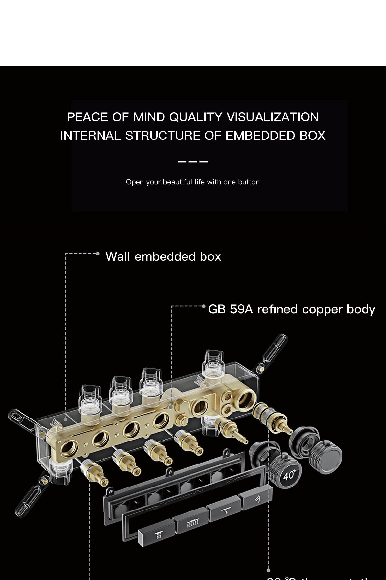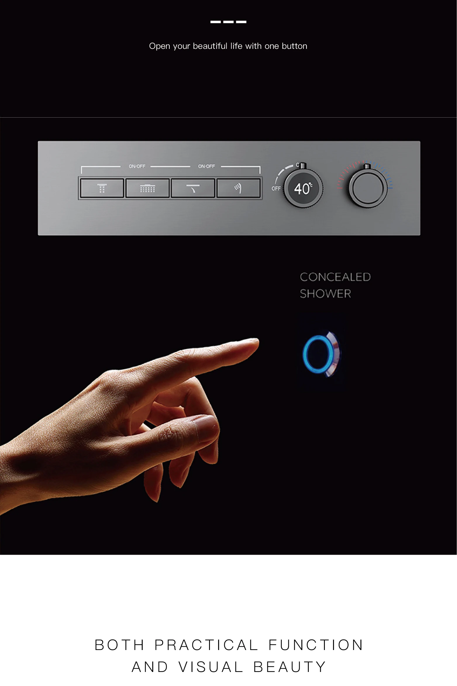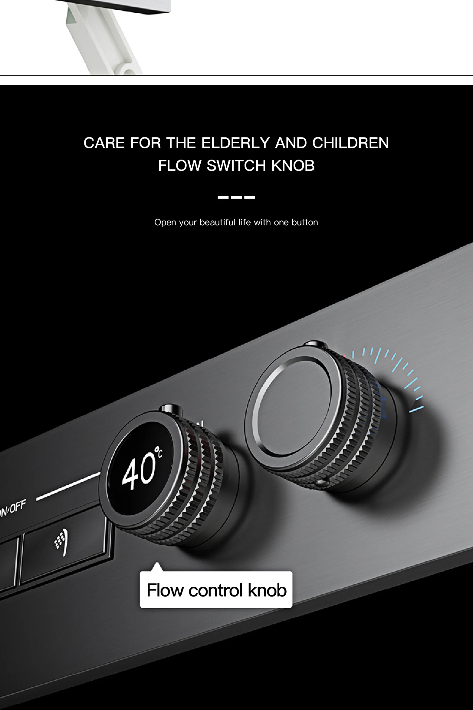 Sistema de chuveiro de bronze preto de luxo wall-mounted led display digital design frio & quente duplo-controle de 4 funções torneira de chuveiro de teto