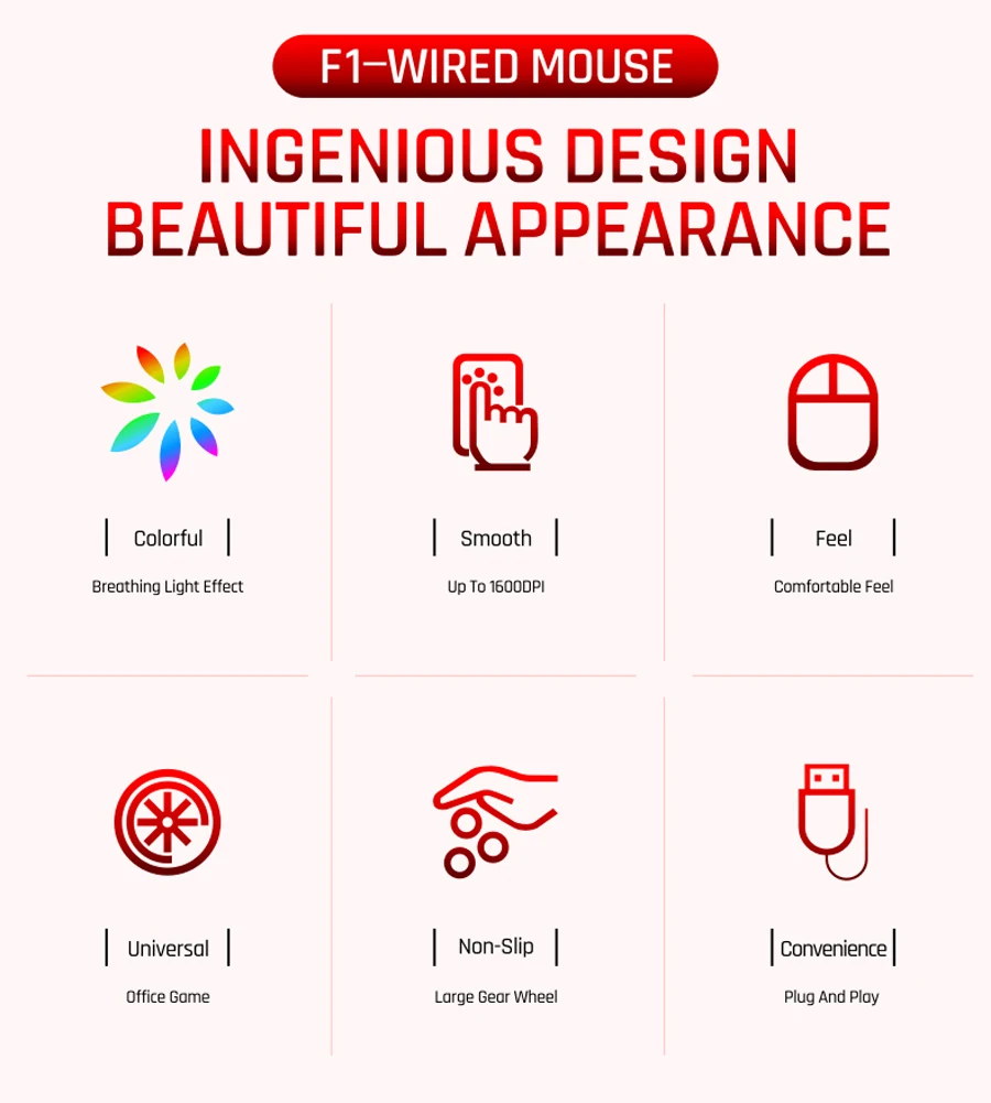 - > SKYLION F1 Wired 3 Teclas Mouse Iluminação Colorida Jogos e Escritório Para Microsoft Windows e Apple IOS System