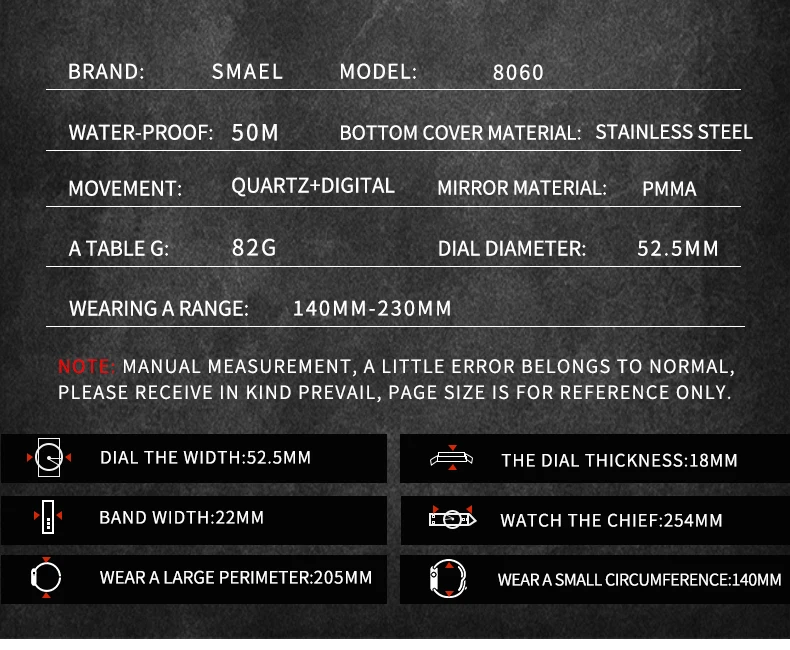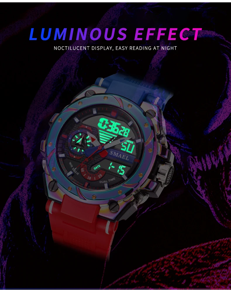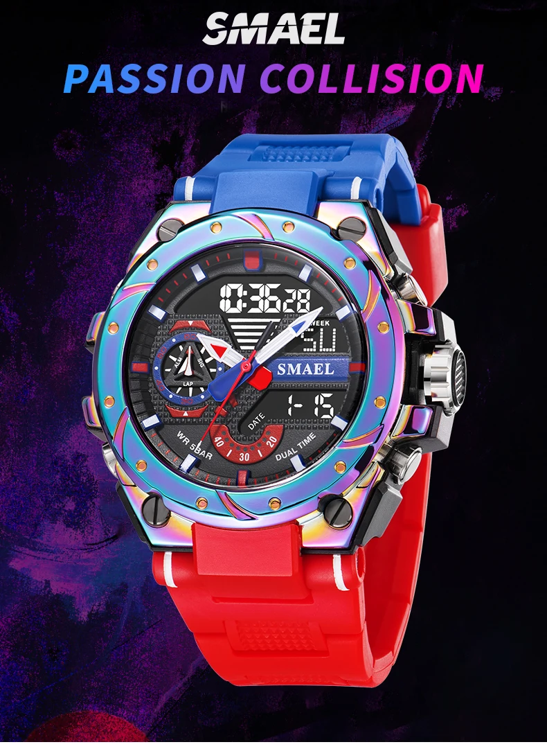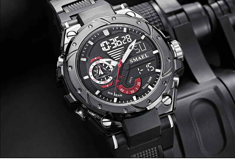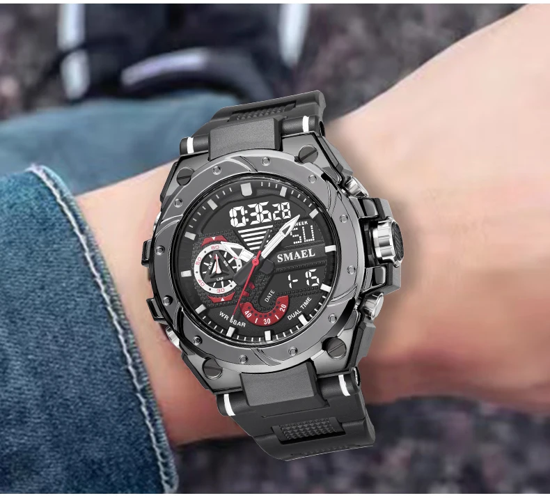 SMAEL-Relógio desportivo de quartzo masculino com ecrã LED, resistente a choques, despertador impermeável, analógico, 8060, 50m