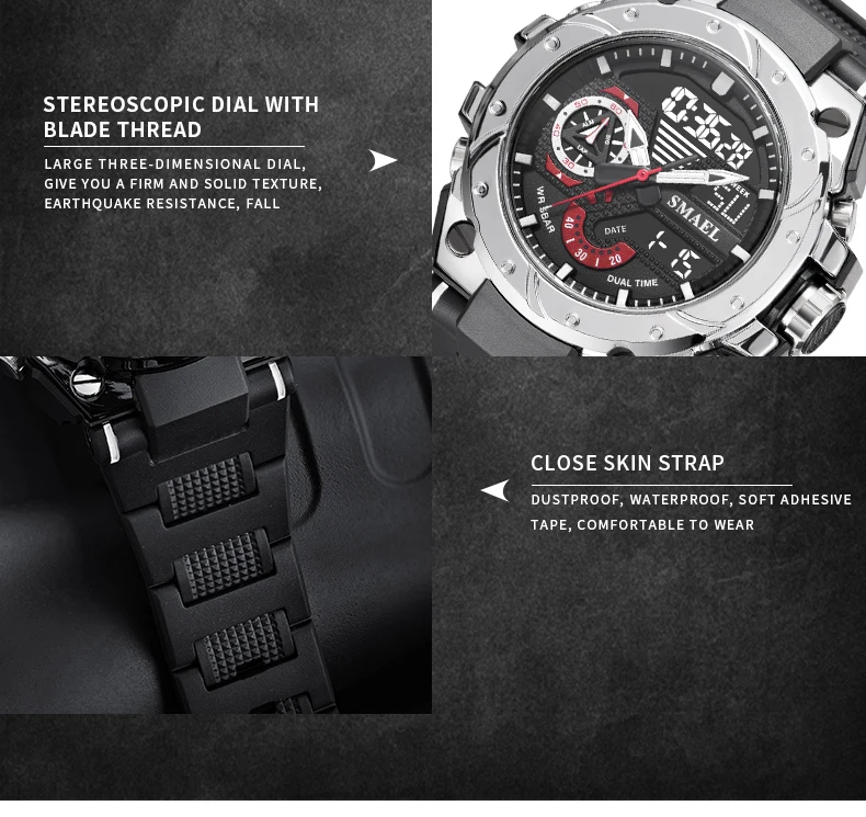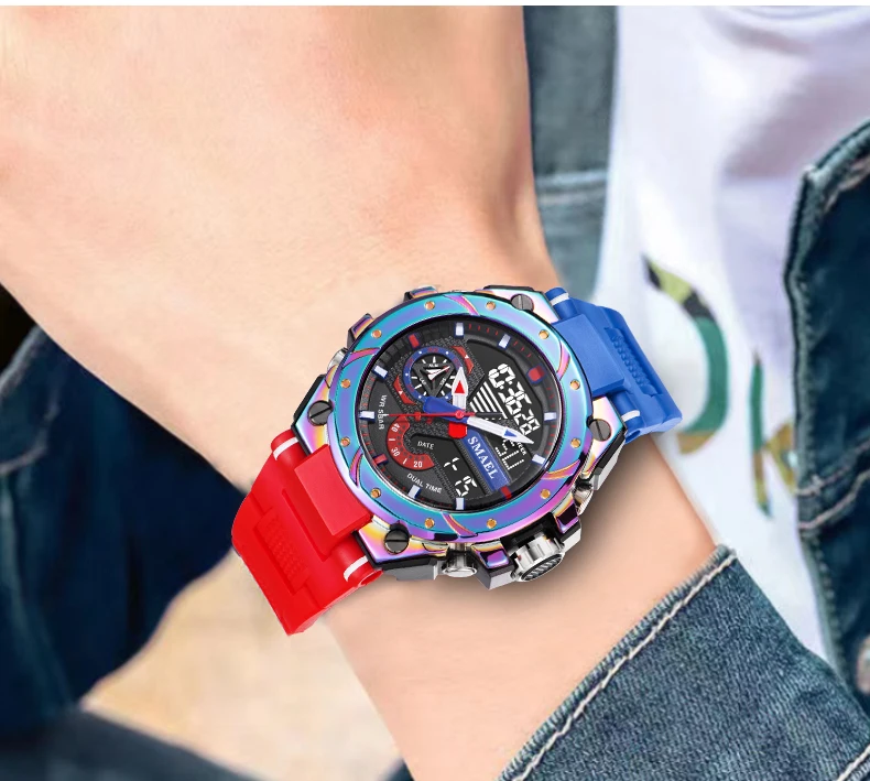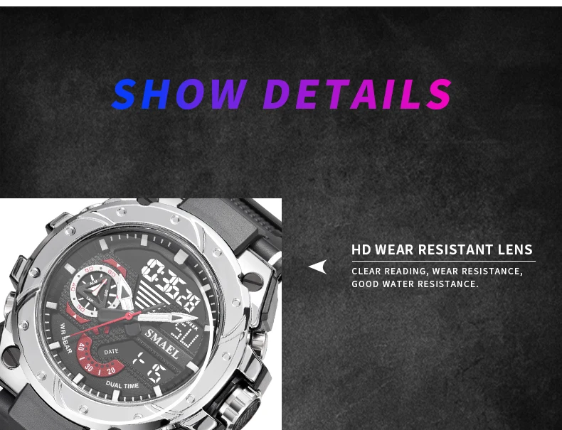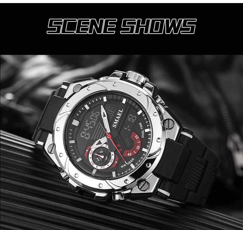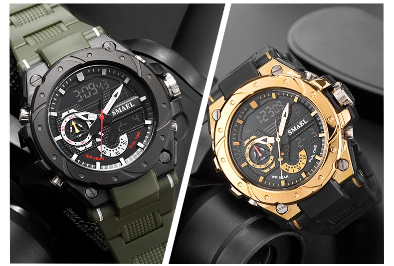 Estes são SMAEL novo relógio esportivo sério com novo visual legal e varia de cores, você pode selecionar cores especiais como verde amry ou kahqi como os relógios militares para uso esportivo externo, você também pode selecionar cores neutras como prata que melhor para o seu jogo diário roupas.