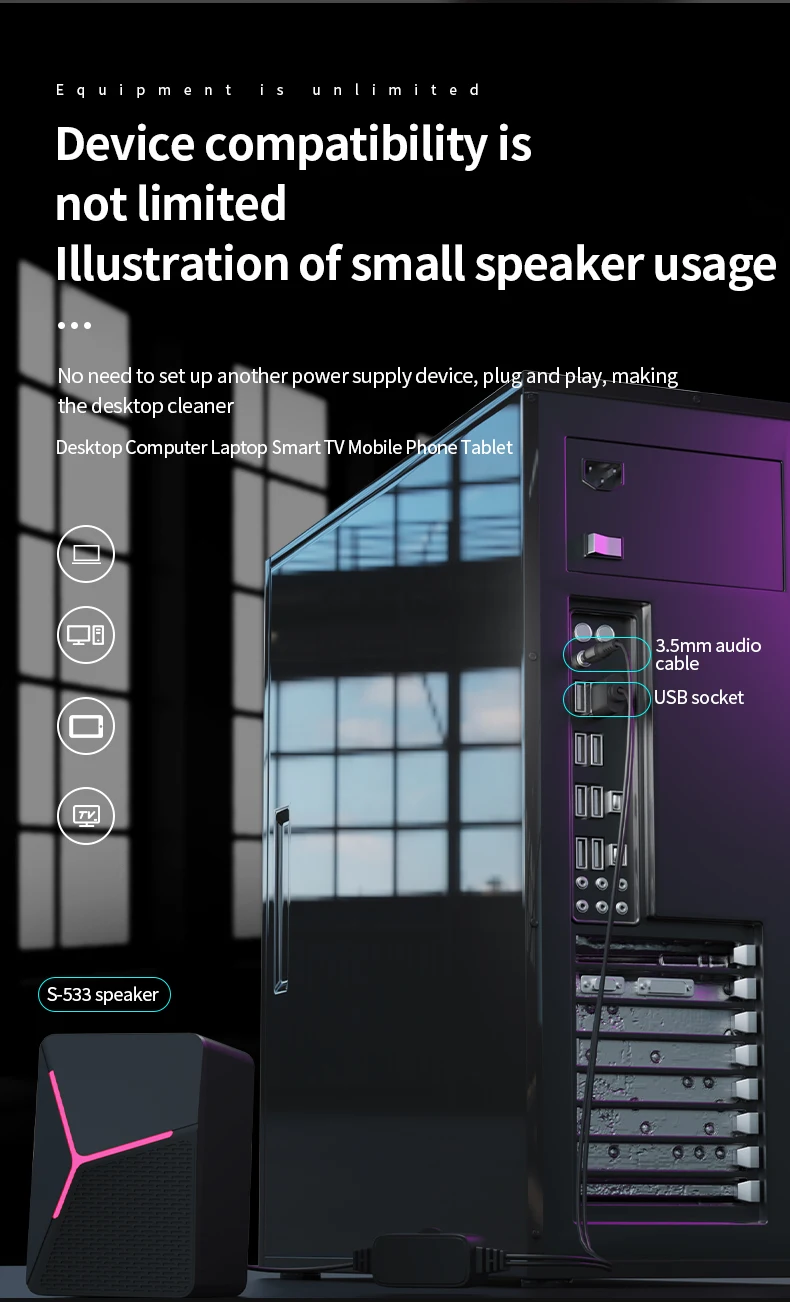 - > SOREX S-553 com fio som computador desktop subwoofer casa desktop portátil pequeno alto-falante USB multimídia preto de alta qualidade