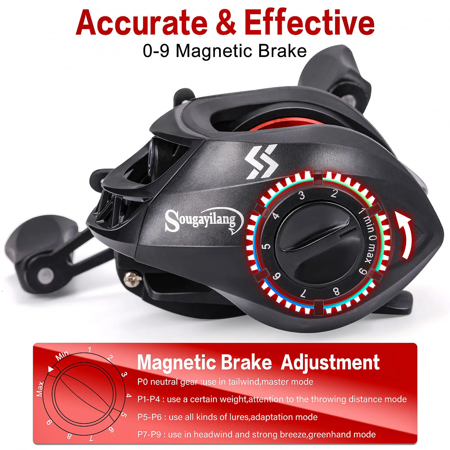 Sougayilang Carretel Leve 7.2:1 Relação De Engrenagem Baitcasting Carretel De Pesca 8kg Max Arraste Freio Magnético Carretel De Pesca De Alta Velocidade