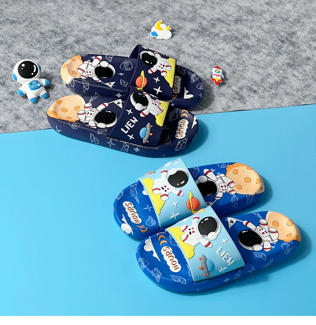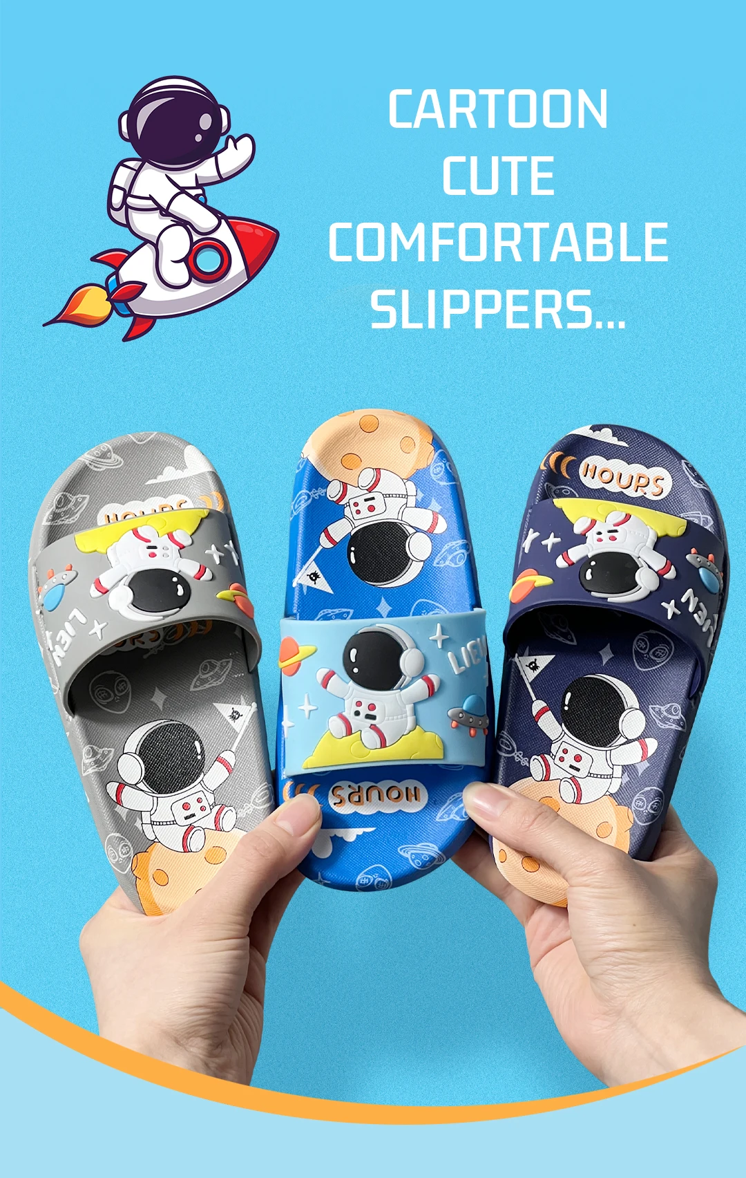 - > Spaceman infantil slides bonito dos desenhos animados astronauta chinelos da criança para meninos e meninas sandálias de dedo aberto