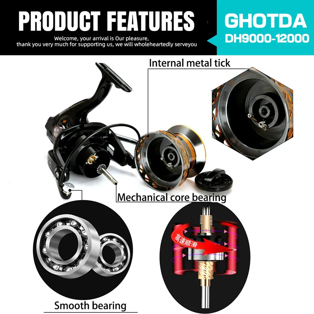 Spinning e Trolling Metal Spool Carretéis De Pesca, 9000, 10000, 12000Series, Sea Boat Reel, Acessórios, Max Drag 30kg, Grande
