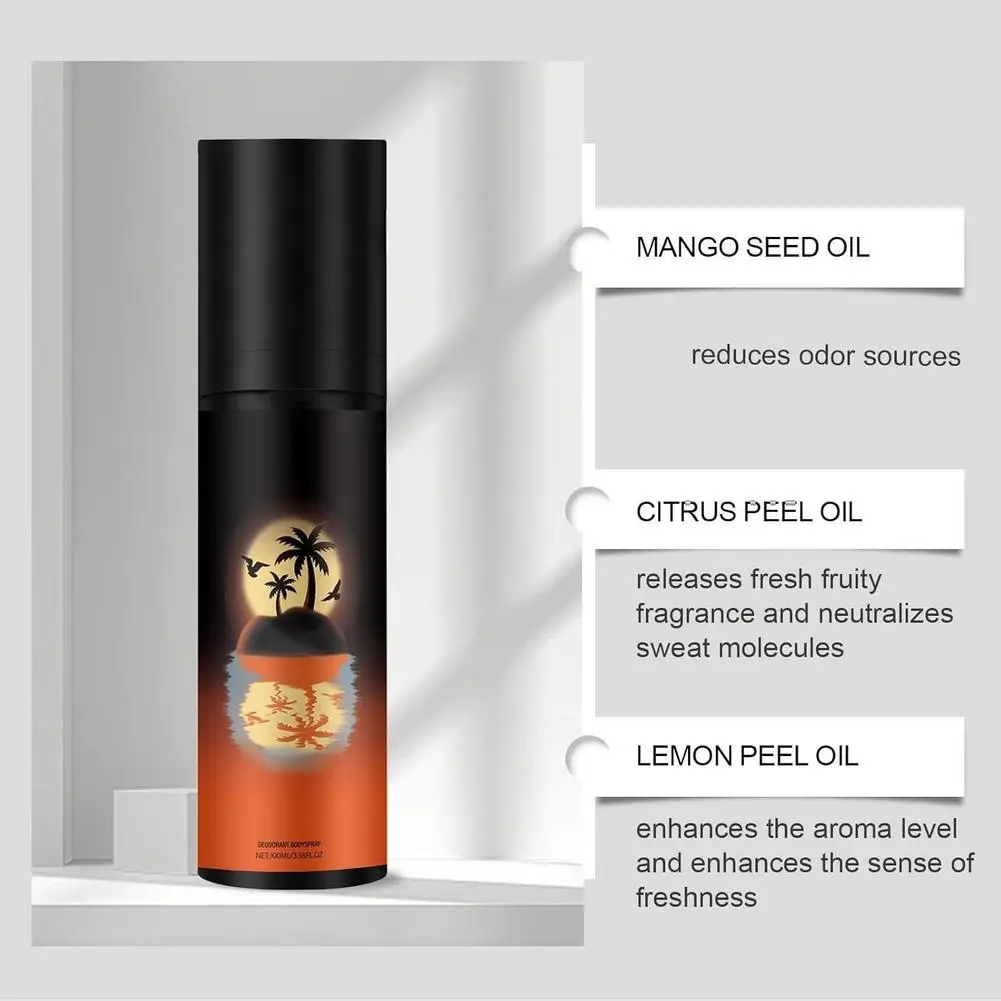Spray desodorizante frutado 100ml, eliminador de suor, manter o rinfresco, remoção de odor, reduz o cheiro ruim do corpo, spray desodorante para axilas