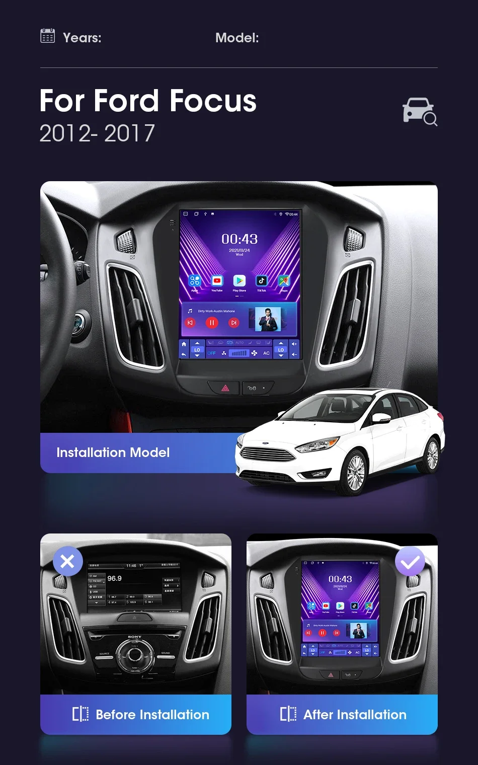 Srnubi 2 din 9.7 "android 13 carplay rádio do carro para ford focus 3 mk 3 2011 2012 - 2019 reprodutor multimídia 2din gps auto estéreo dvd