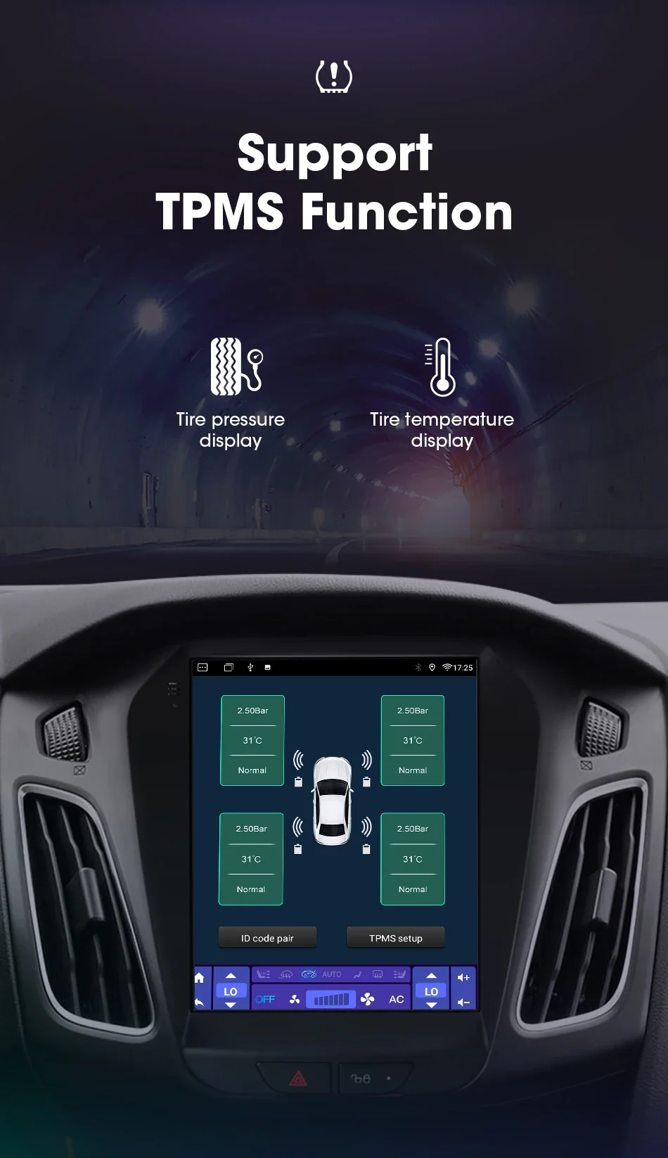 Pode ser usado em conjunto com nosso sistema de monitoramento de pressão dos pneus TPMS para monitorar a temperatura e a pressão dos pneus em tempo real