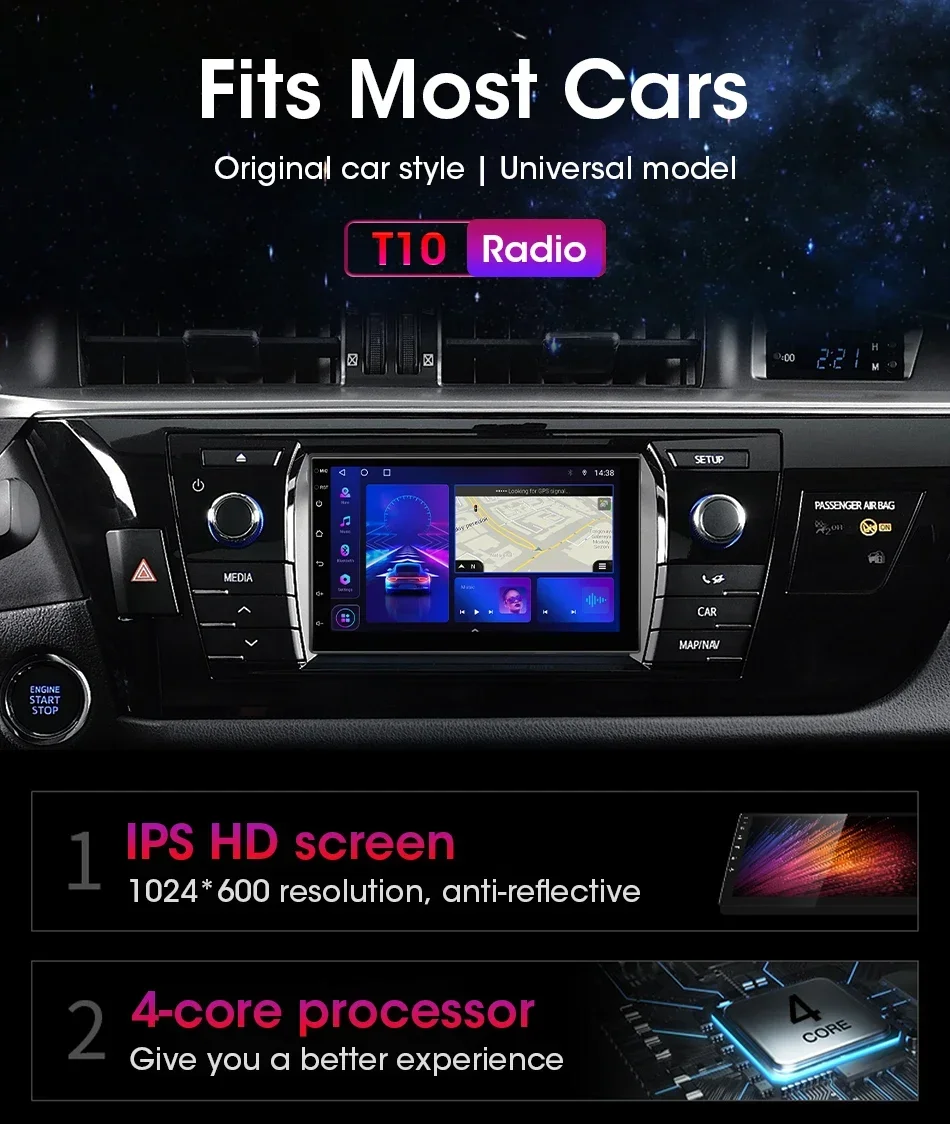 Srnubi 7 9 10 ''Android 12 2 Din Rádio de carro para Toyota VW Kia Nissan Honda Lada Ford Reprodutor multimídia Carplay Estéreo 4G GPS DVD