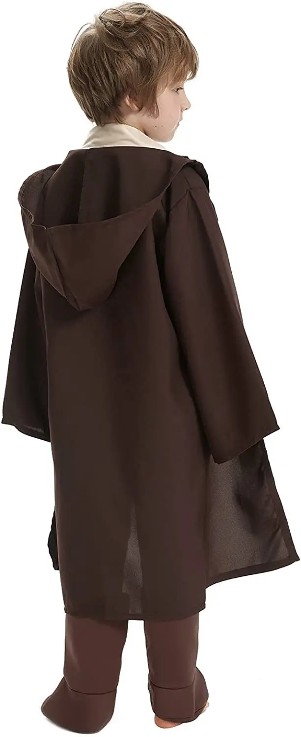 Star wars traje obi-wan kenobi crianças cosplay guerreiro jedi cosplay com capuz manto roupas terno trajes de festa de halloween para criança