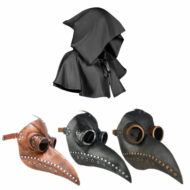 Steampunk Plague Doctor Máscara e Manto Conjunto, Fantasia de Halloween para Adulto, Bico de Pássaro, Encenação, Foto Prop, Presente