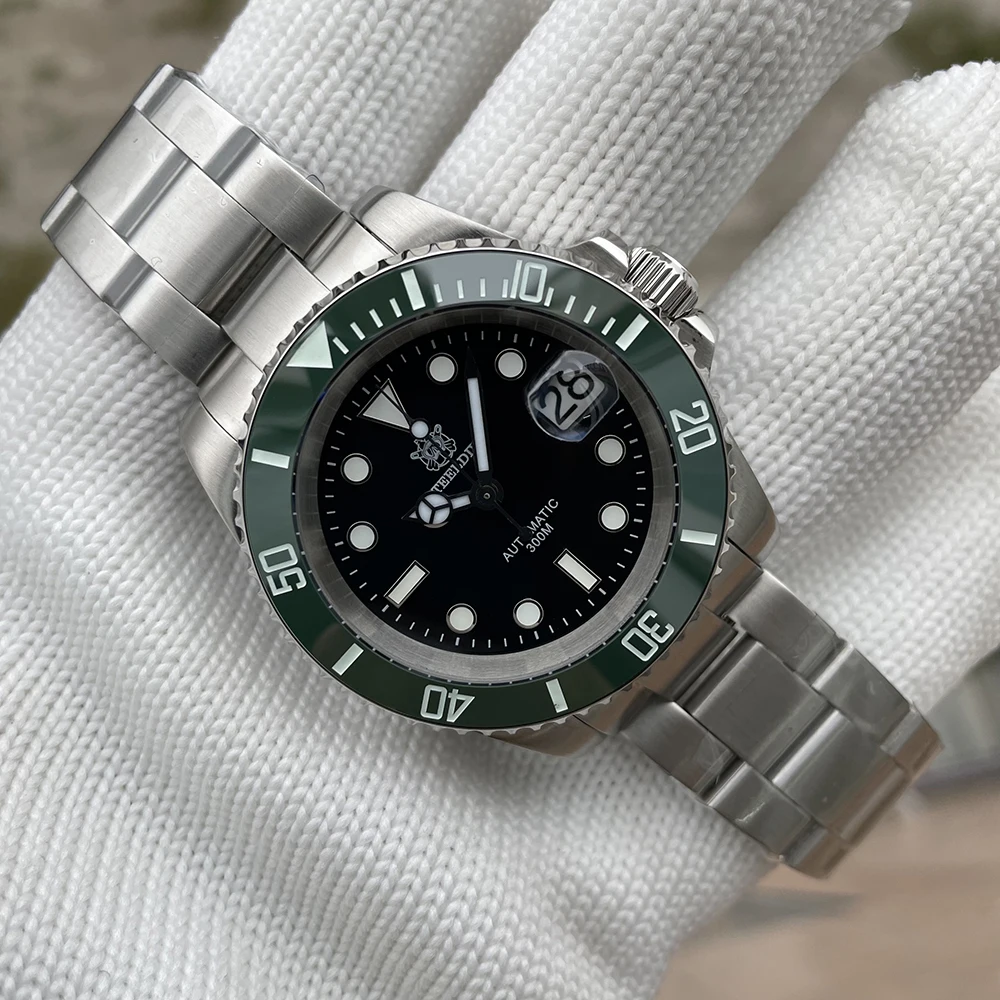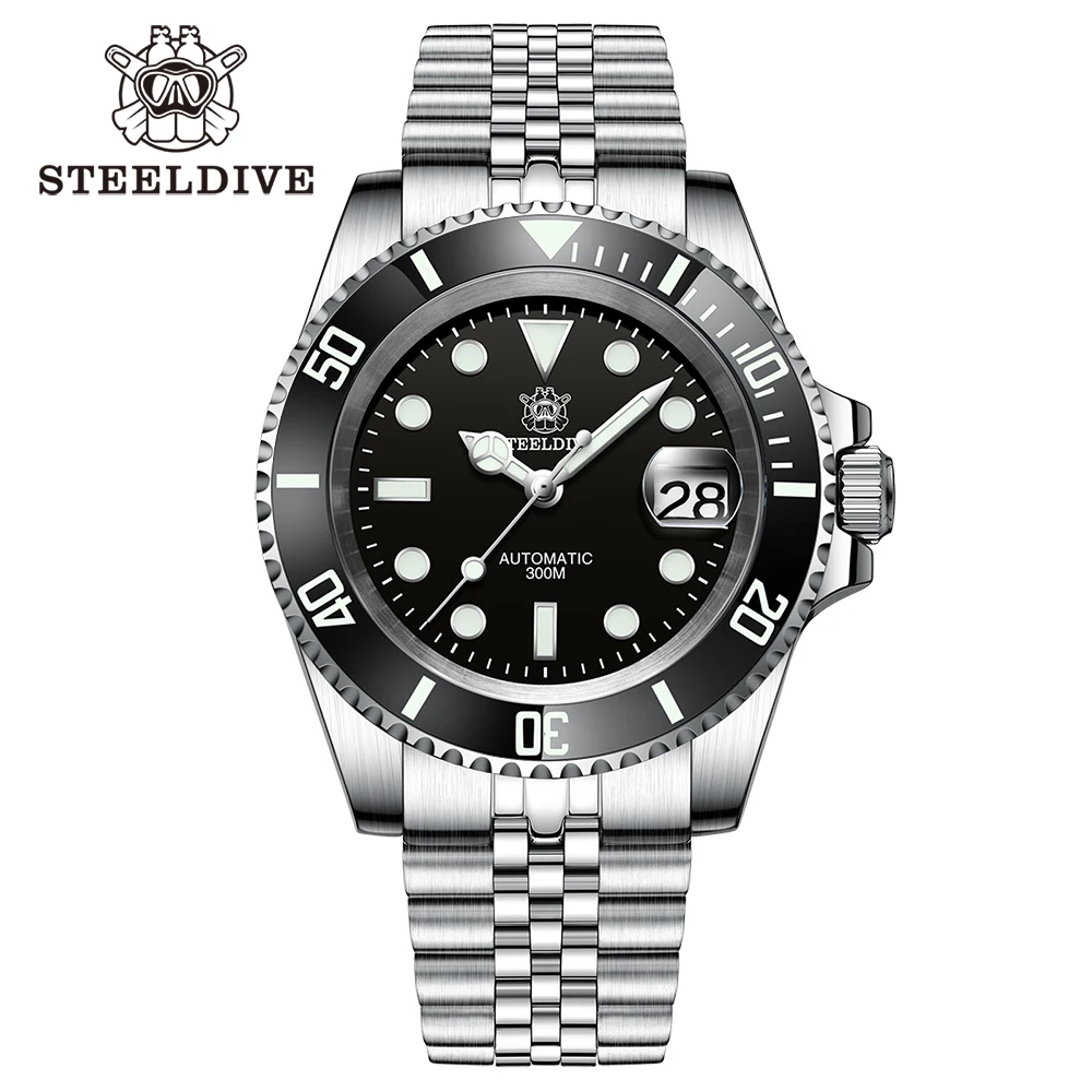 STEELDIVE-Relógio Automático Masculino, Relógios de Mergulho, Moldura Cerâmica Verde, Vidro Sapphire, Mostrador Preto, 300m Impermeável, SD1953