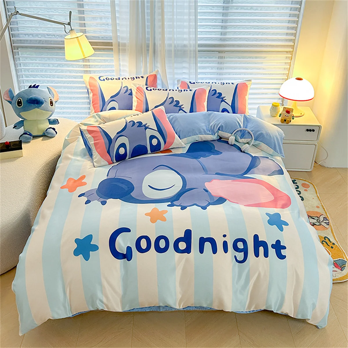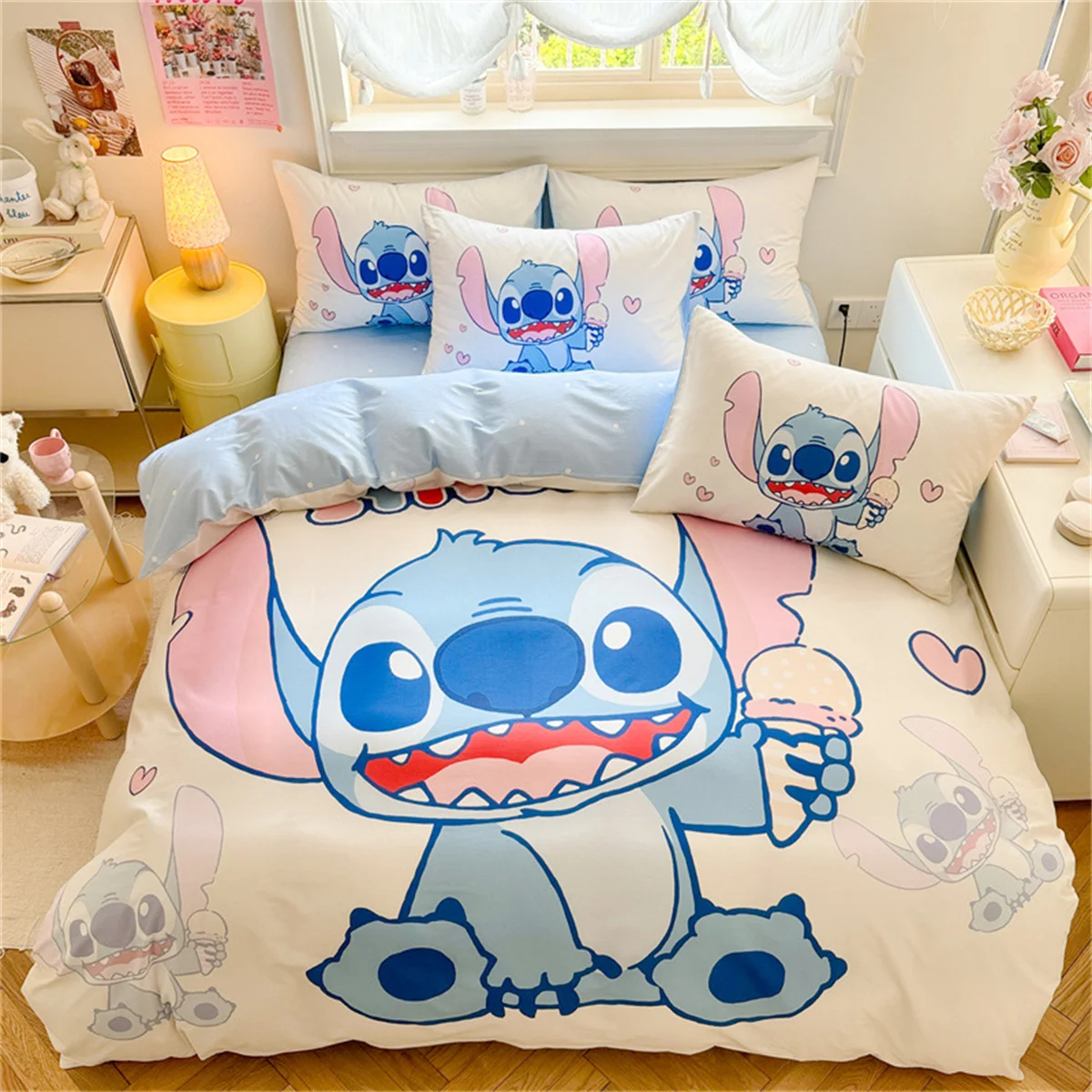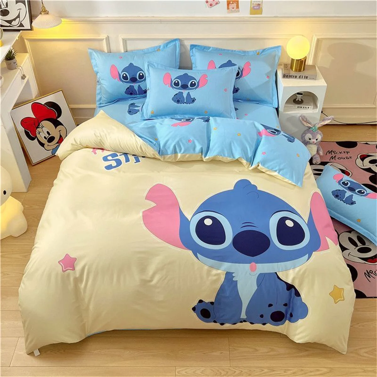 Stitch dos desenhos animados e lilo capa de edredão crianças conjunto com fronha capa colcha para decoração do quarto rainha rei tamanho completo