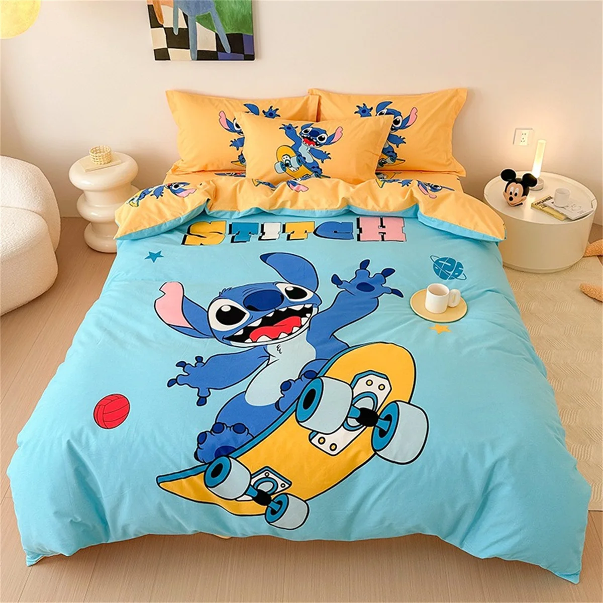 1. conjunto de cama com estampa de desenho animado: