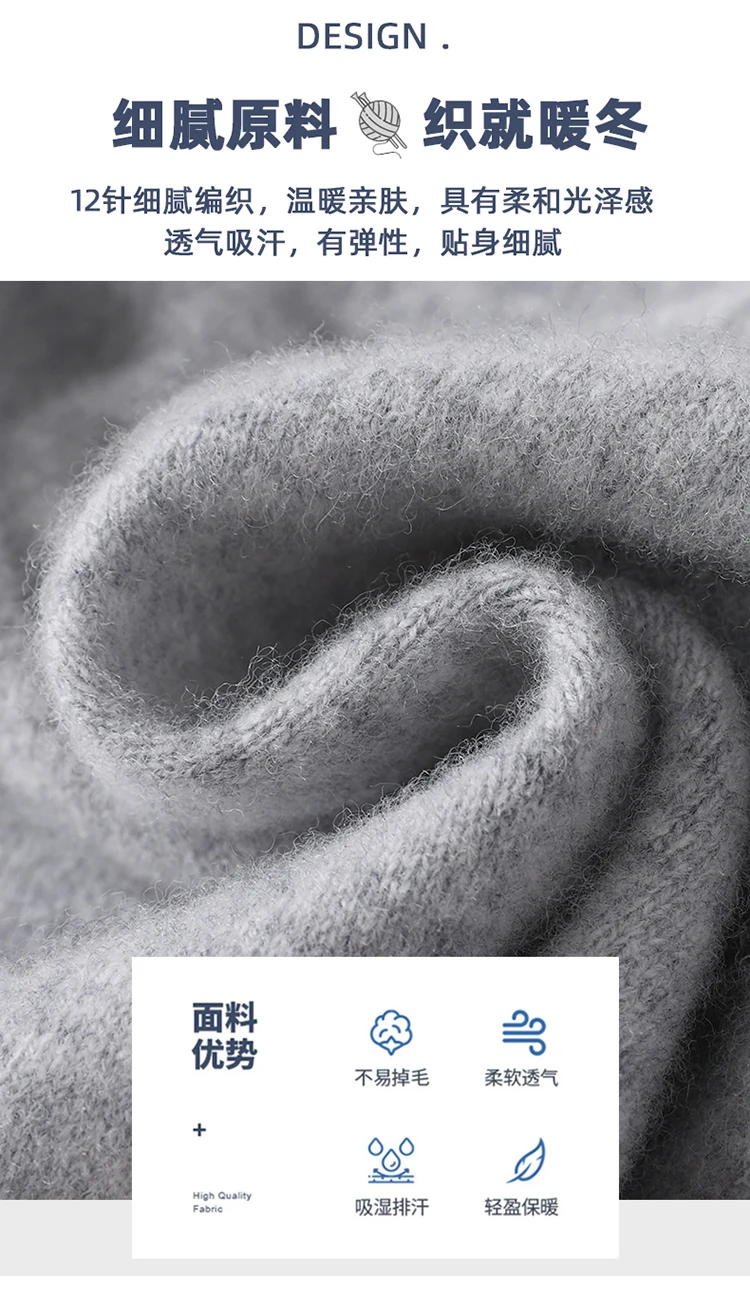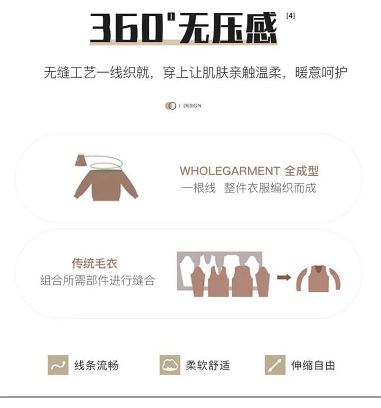 O suéter é feito de um único fio, sem juntas, é muito macio, confortável e high-end.