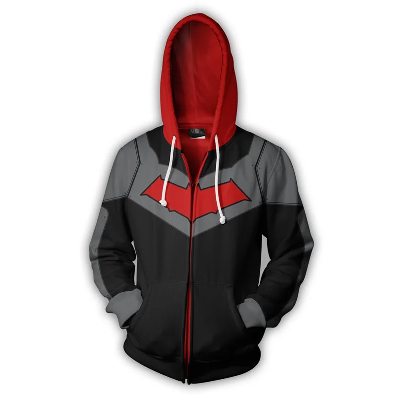 Super-herói nightwing robin cosplay moletom com capuz traje halloween zíper outerwear casual hoodies cosplay traje jaquetas