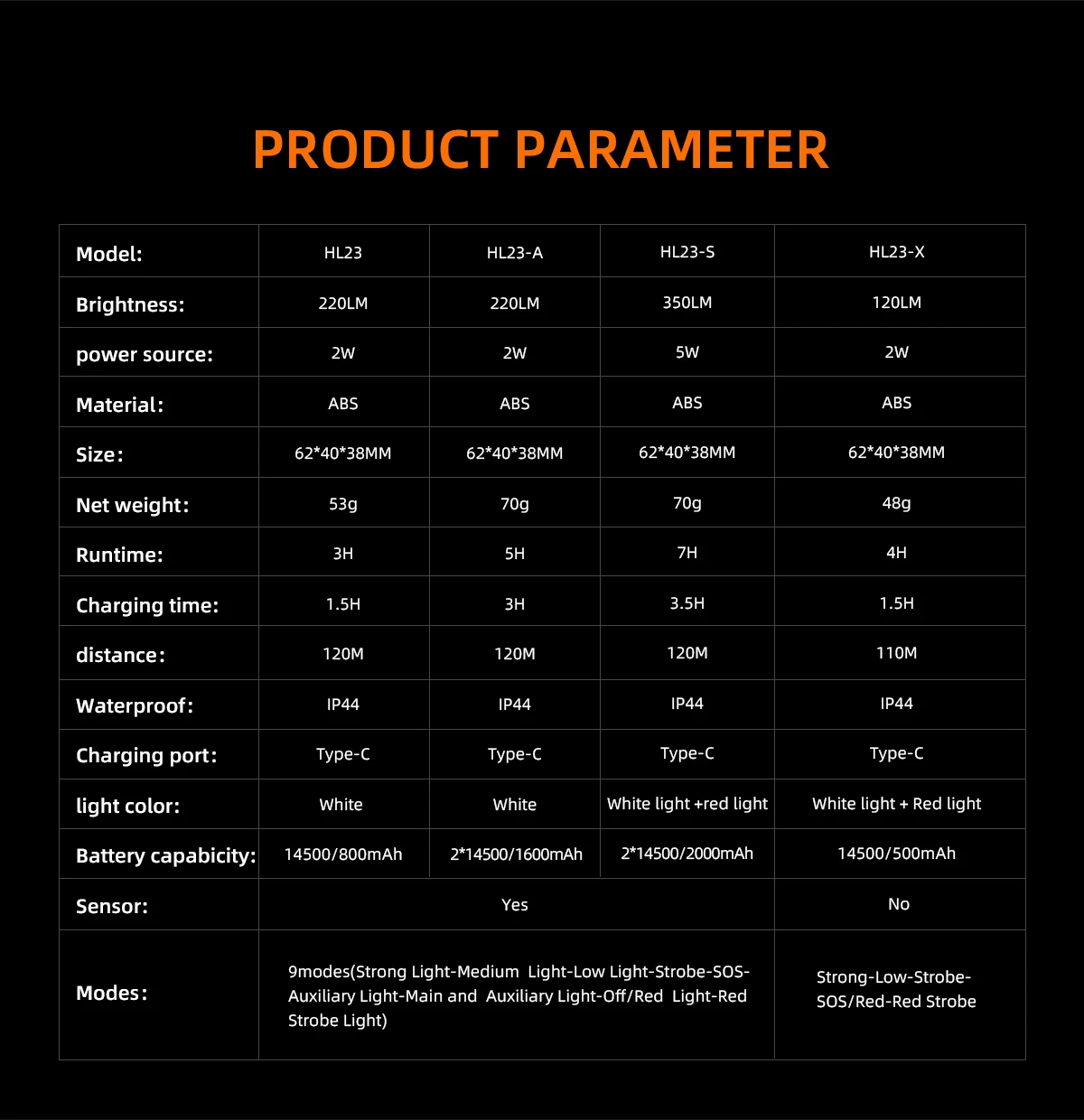 O farol recarregável USB possui 9 modos de iluminação: luz forte, luz média, luz baixa, luz estroboscópica, modo SOS, luz auxiliar, luz principal e auxiliar, luz vermelha e luz vermelha forte.Quando comparado a outros faróis, o farol com sensor da série SUPERFIRE HL23 se destaca pelo seu design leve e elegante.Além disso, este farol LED pode durar até 12 horas com pouca luz, proporcionando proteção duradoura.É uma opção incomparável para acampar, ler, correr à noite, pescar, consertar e outros cenários.