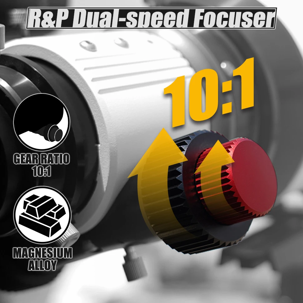 Focuser: 2.5"rack-and-pinion,dualspeed(1/10)