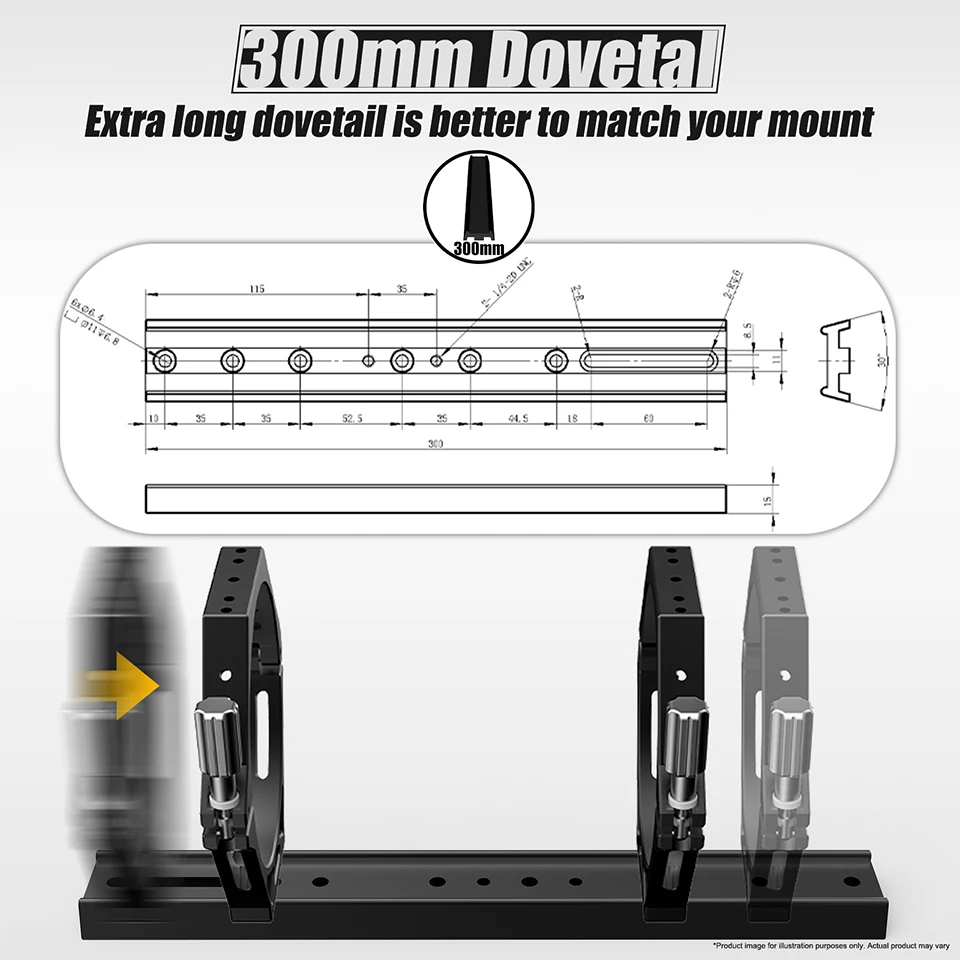 Todos os anéis do tubo possuem 26 furos para parafusos + uma alça de parafuso de montagem.Esses anéis tubulares com tantos orifícios para parafusos podem ser compatíveis com mais instalações de equipamentos, como dispositivo Smart WIFI, escopo guia, câmera astronômica, etc., atendendo a diversas necessidades de instalações.