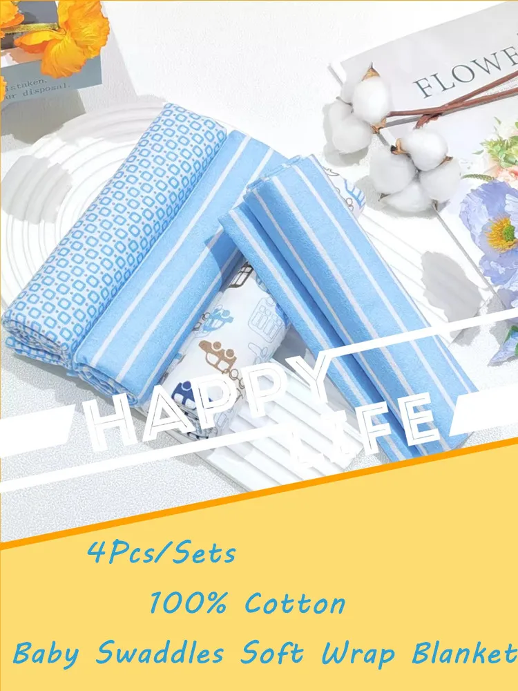Swaddles Flanela de Algodão para Bebés, Envoltório Macio, Meninas, Rapazes, Supersoft, Lençol para Receber, 100% Algodão, Conjunto 4 peças