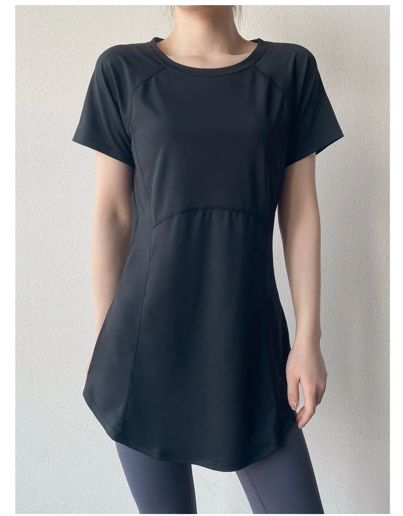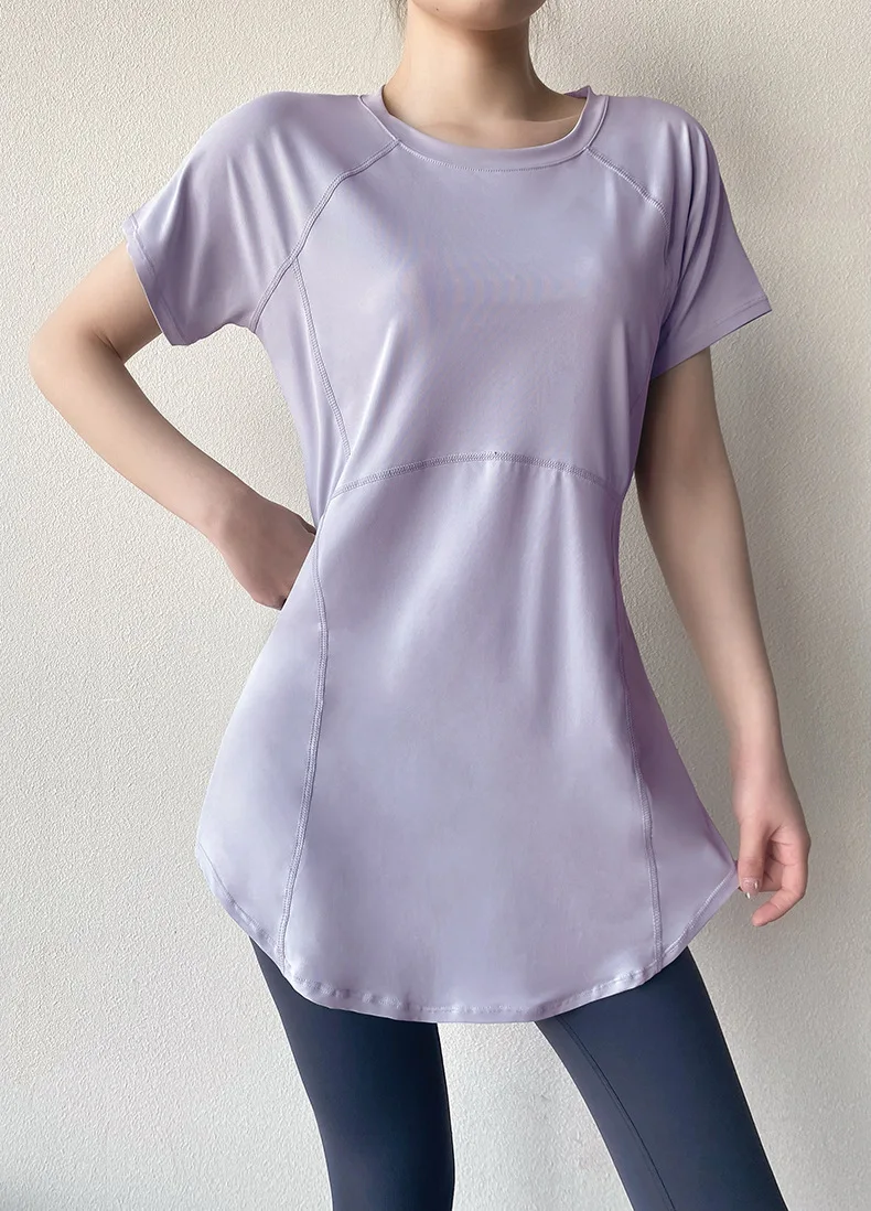 T-shirt de manga curta para mulher, secagem rápida, respirável, esbelta, fitness, ginásio, running, yoga, top com cobertura de topo, 2024