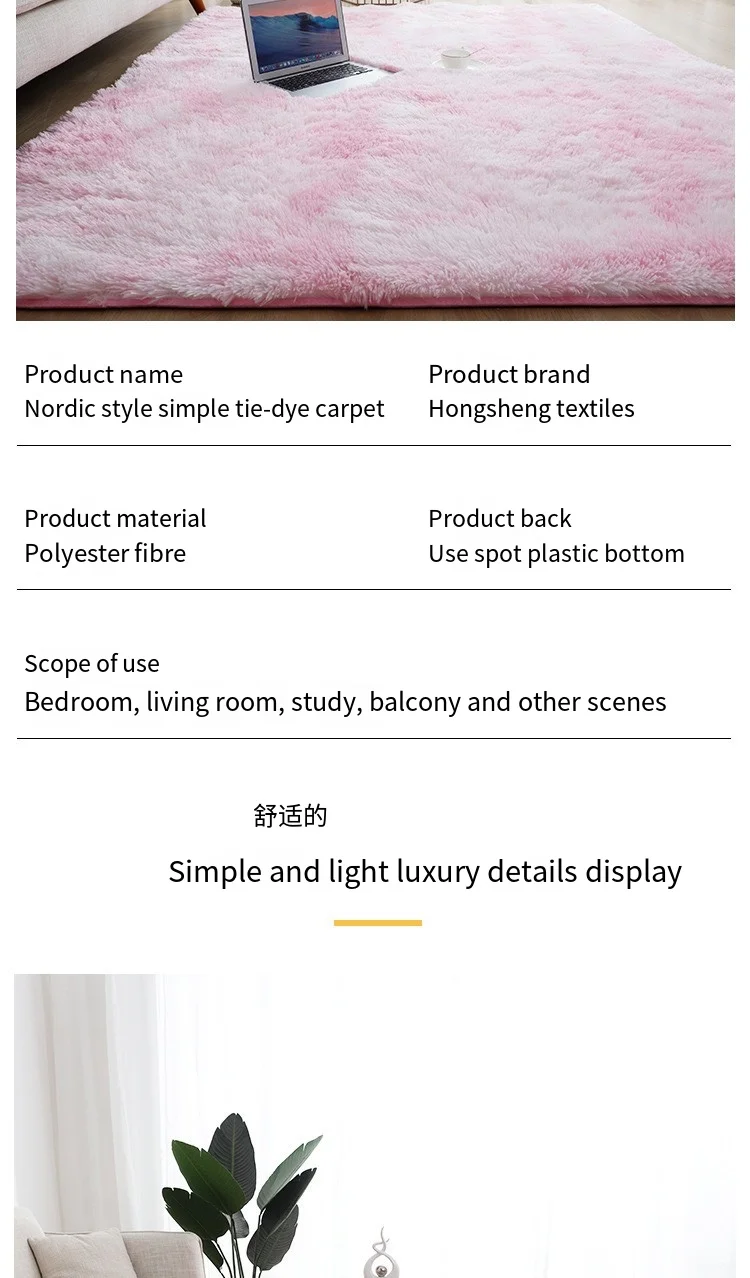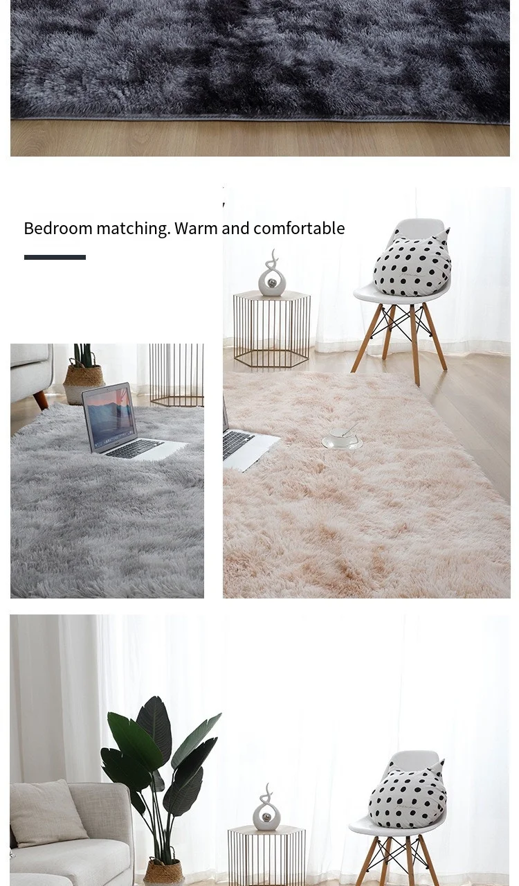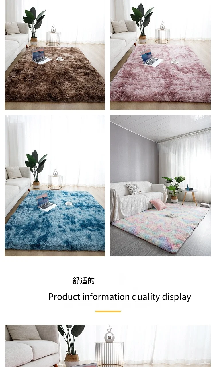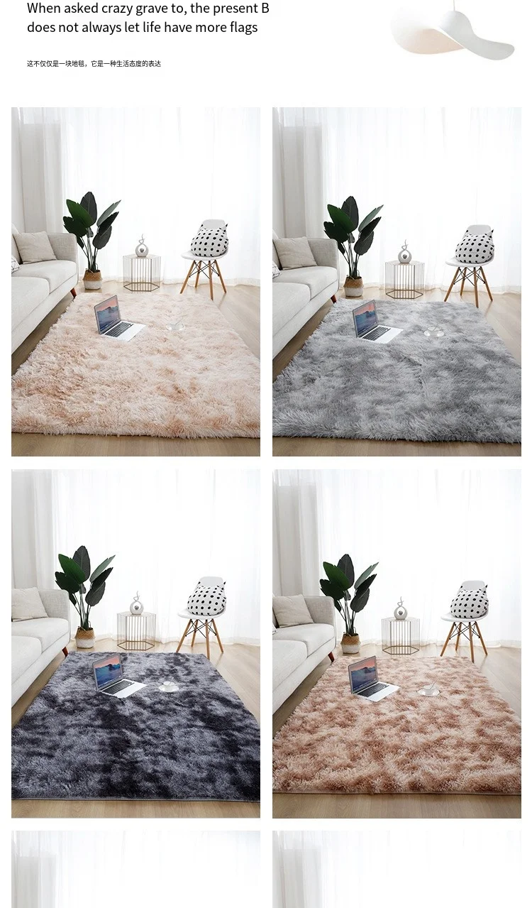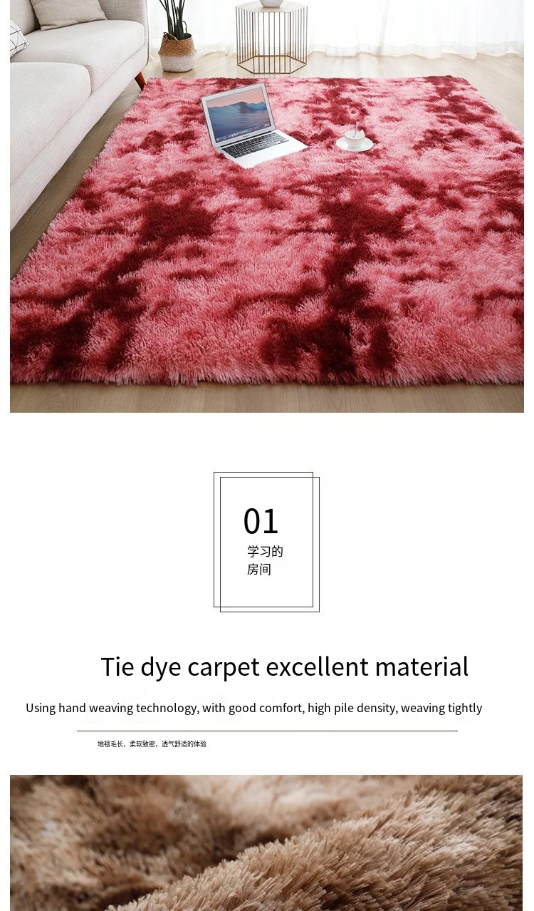 Tapete De Lã De Seda Tie-Dye Tapete De Quarto Espessado Cabelo Comprido Cobertor De Cama De Janela, Simples Ins Vento, Cor sólida, Sala De Estar, Atacado