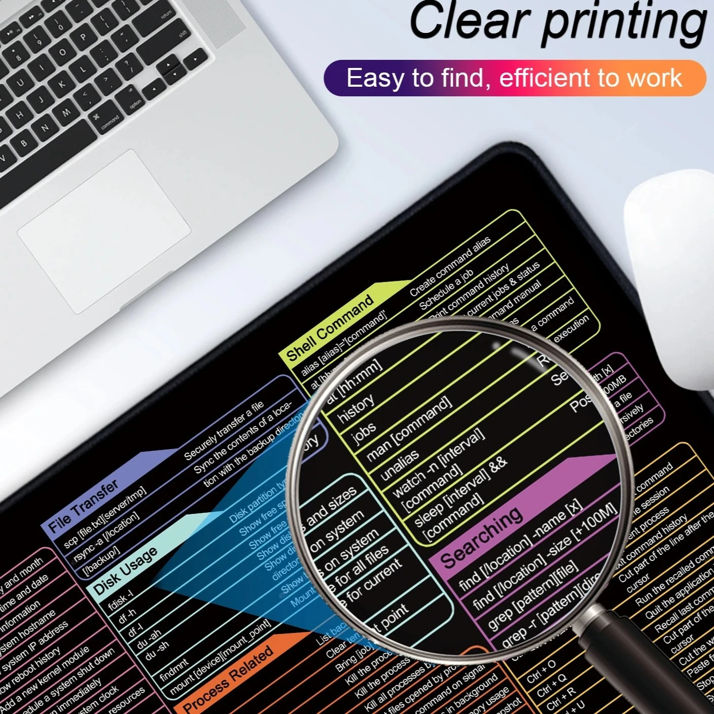 Tapete de mouse para escritório, inglês, linux, python, padrão de atalho, excel, tapete de mesa, teclado de computador, iniciantes para trabalhador de escritório
