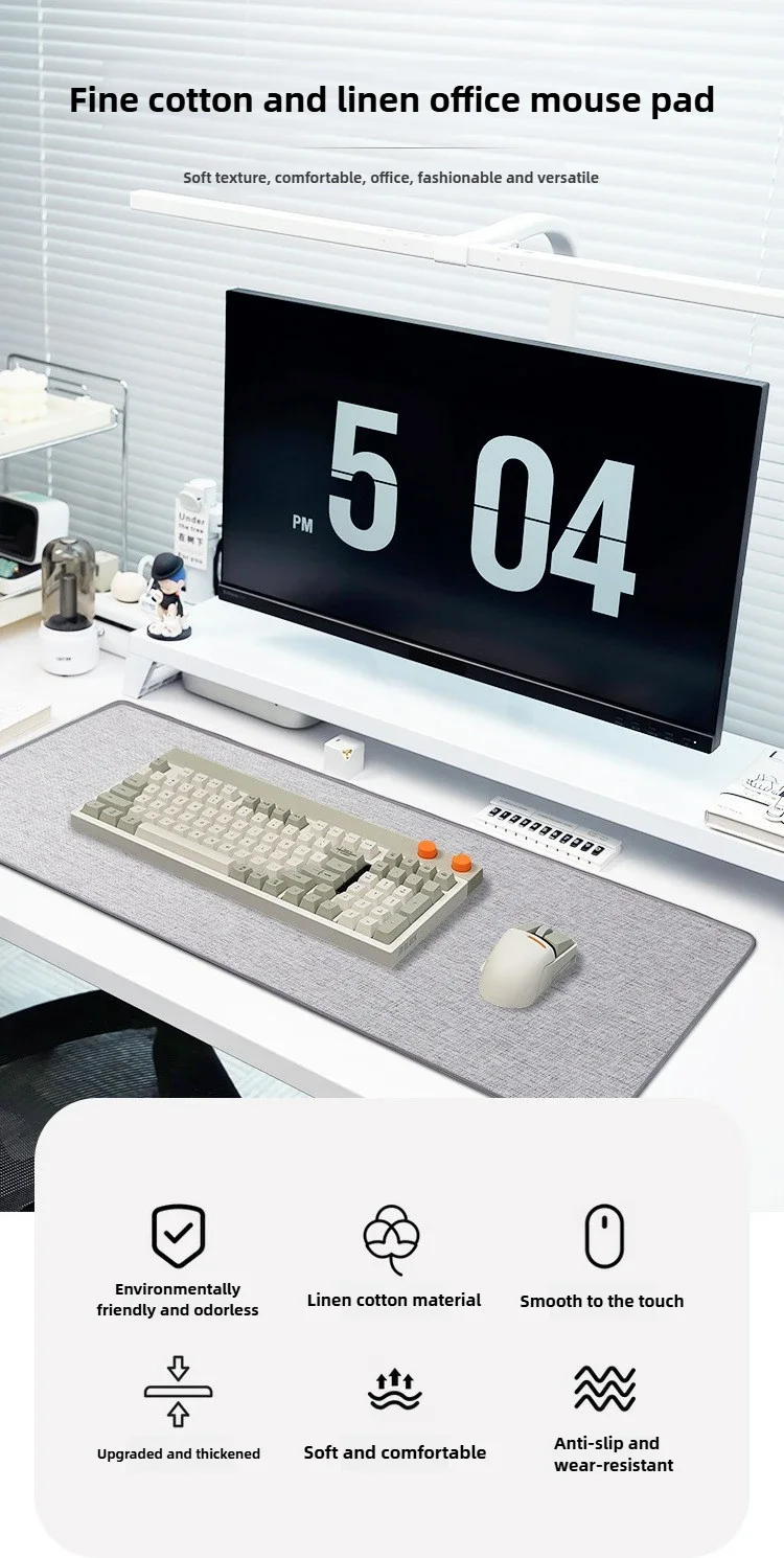 Tapete de mouse para jogos, algodão e linho, borracha xxl, tapete grande para mesa, pc, teclado, computador