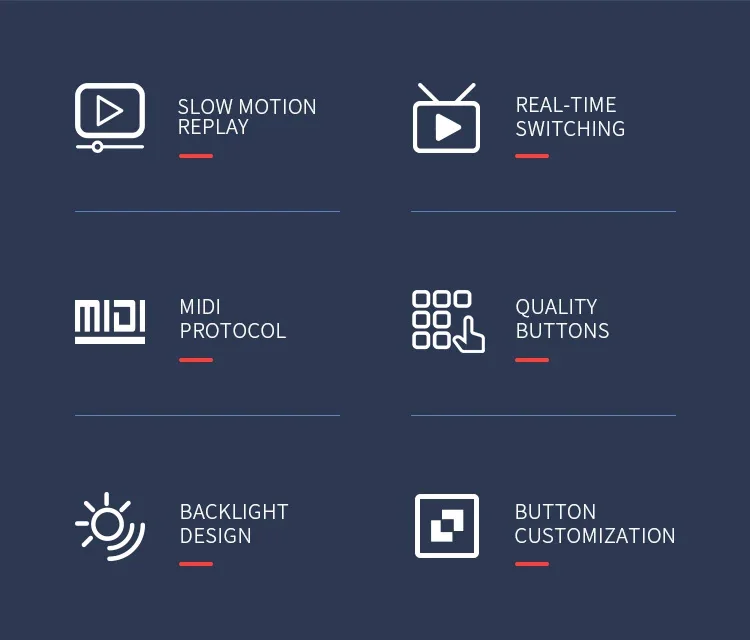 - > Teclado de reprodução ao vivo, alça de controle de pesquisa, efeitos especiais, protocolo midi, usb, evento esportivo, uso de replay de movimento lento