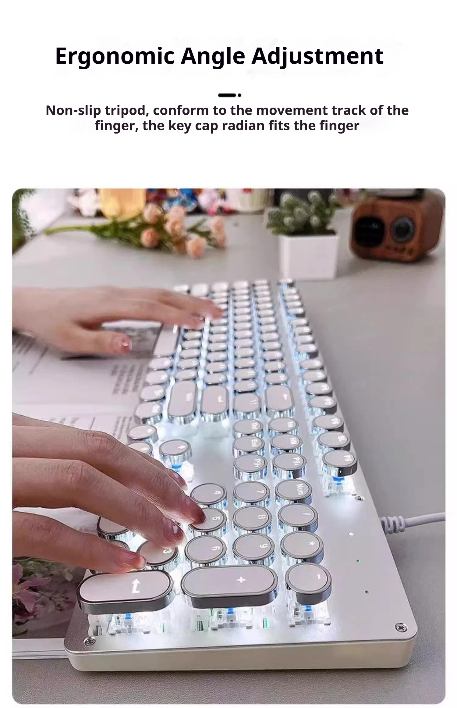 - > Teclado mecânico para jogos EWEADN TK100 Punk para máquina de escrever, 104 teclas com teclados com fio USB retroiluminados por LED, para PC laptop Windows