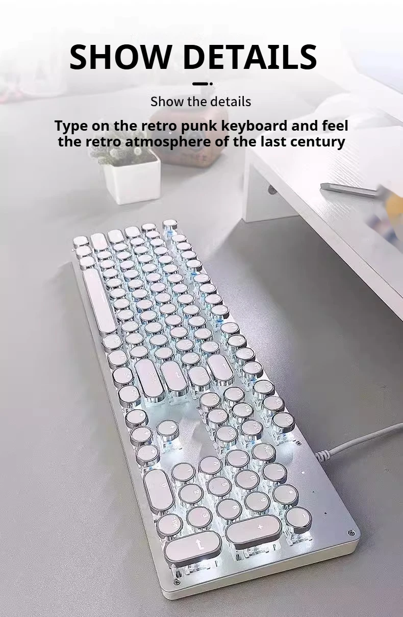 Teclado mecânico para jogos EWEADN TK100 Punk para máquina de escrever, 104 teclas com teclados com fio USB retroiluminados por LED, para PC laptop Windows
