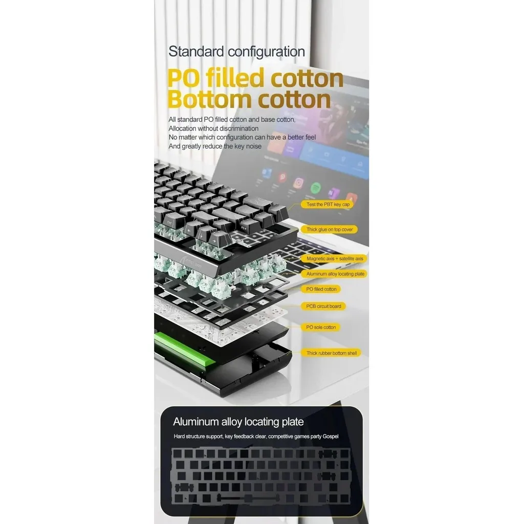 Gatilho ultrassensível de 0,01 mm| Retorno de 8000 Hz| Layout compacto de 60%| Retroiluminação colorida RGB fantasia