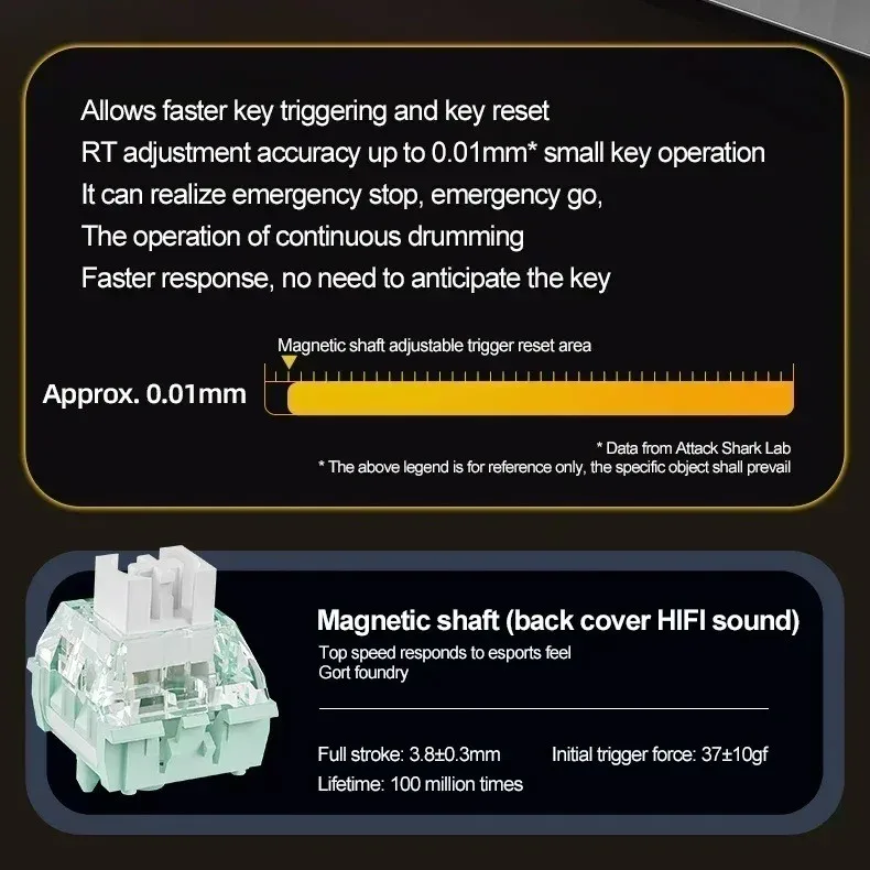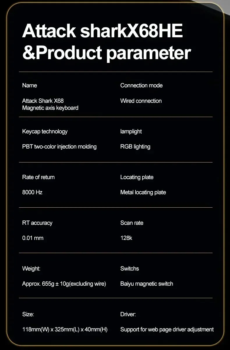 - > Teclado para jogos Attack Shark X68 He Mecânico magnético com fio para jogos profissionais 0,01 mm de disparo rápido 8000 Hz taxa de 128 K