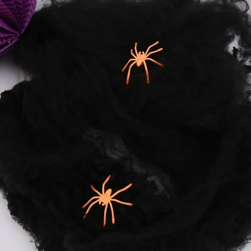 - > Teia de aranha artificial decoração de halloween assustador festa cena adereços branco elástico teia de aranha horror casa decoração acessórios