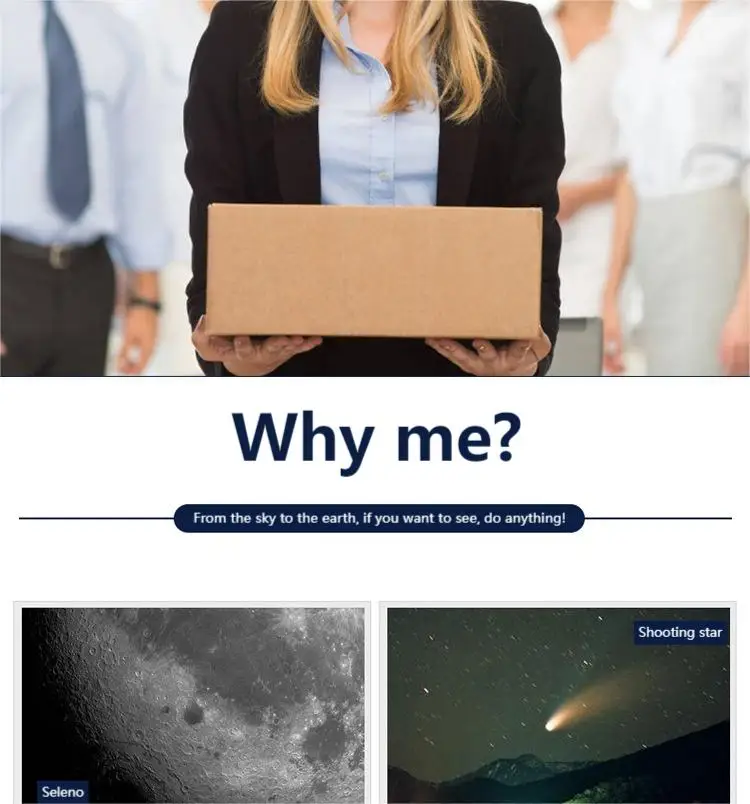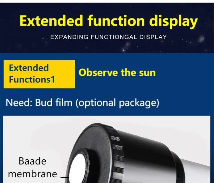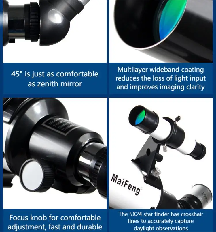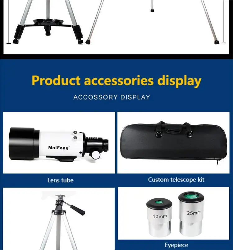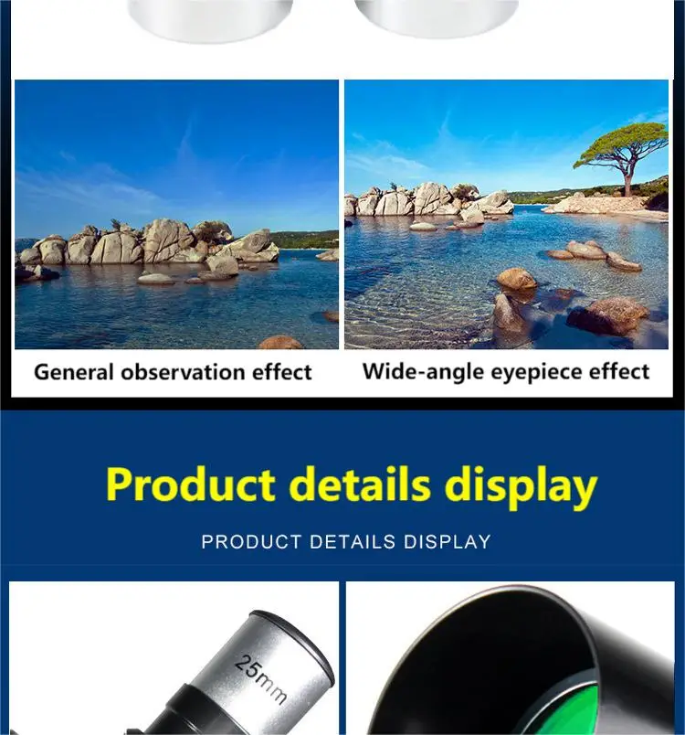| aplicação | Visualizando a paisagem, a lua e a estrela são curtas e pequenas, com uma maleta de transporte, que é muito adequada para realizar, observar paisagens, pessoas e pássaros. |
