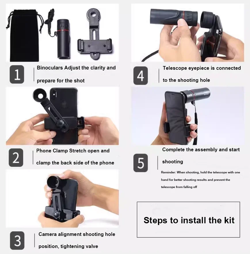 - > Telescópio monocular hd 2000x24, mini telescópio portátil para celular com suporte para acampamento ao ar livre, caça, observação de pássaros