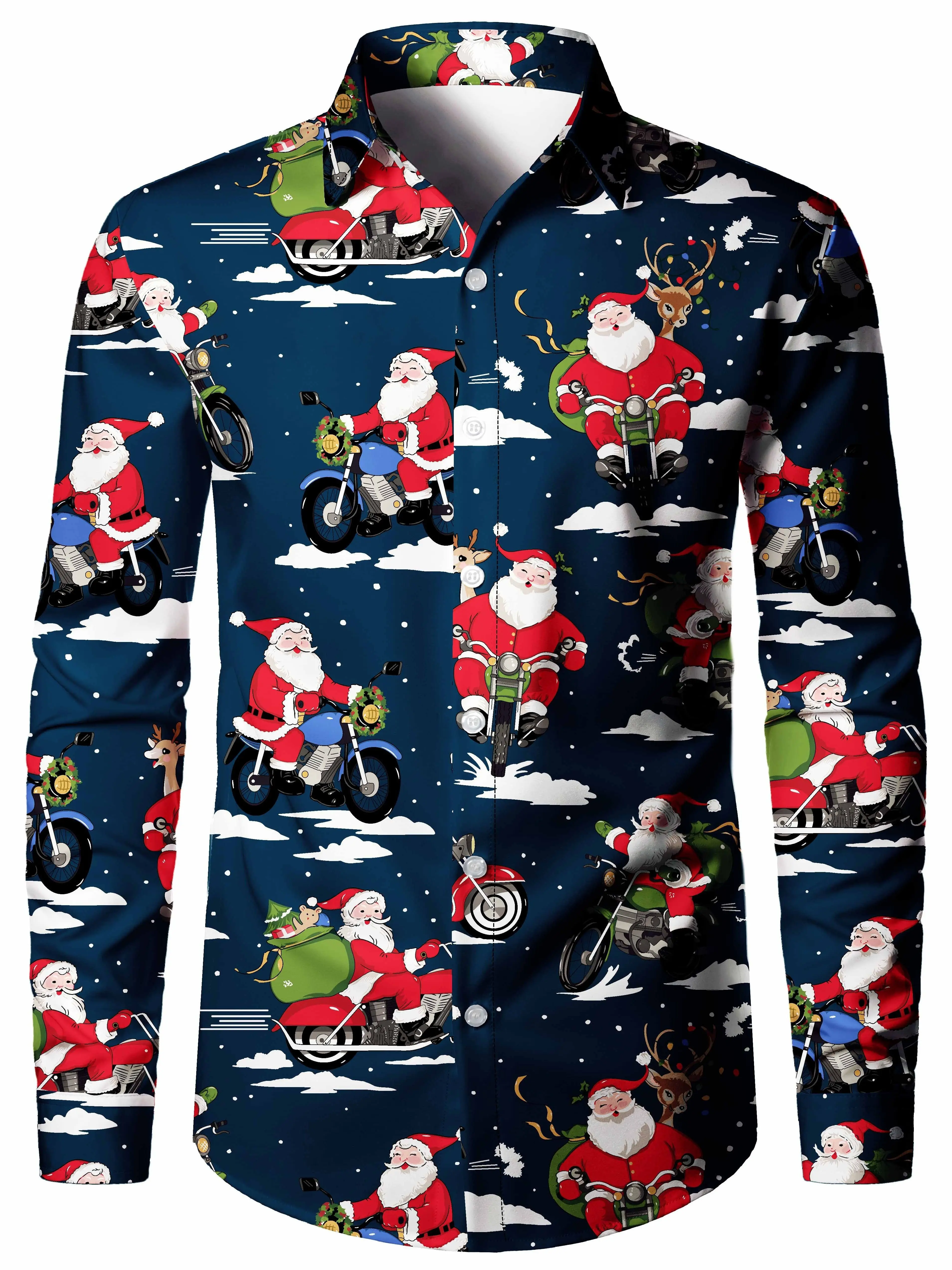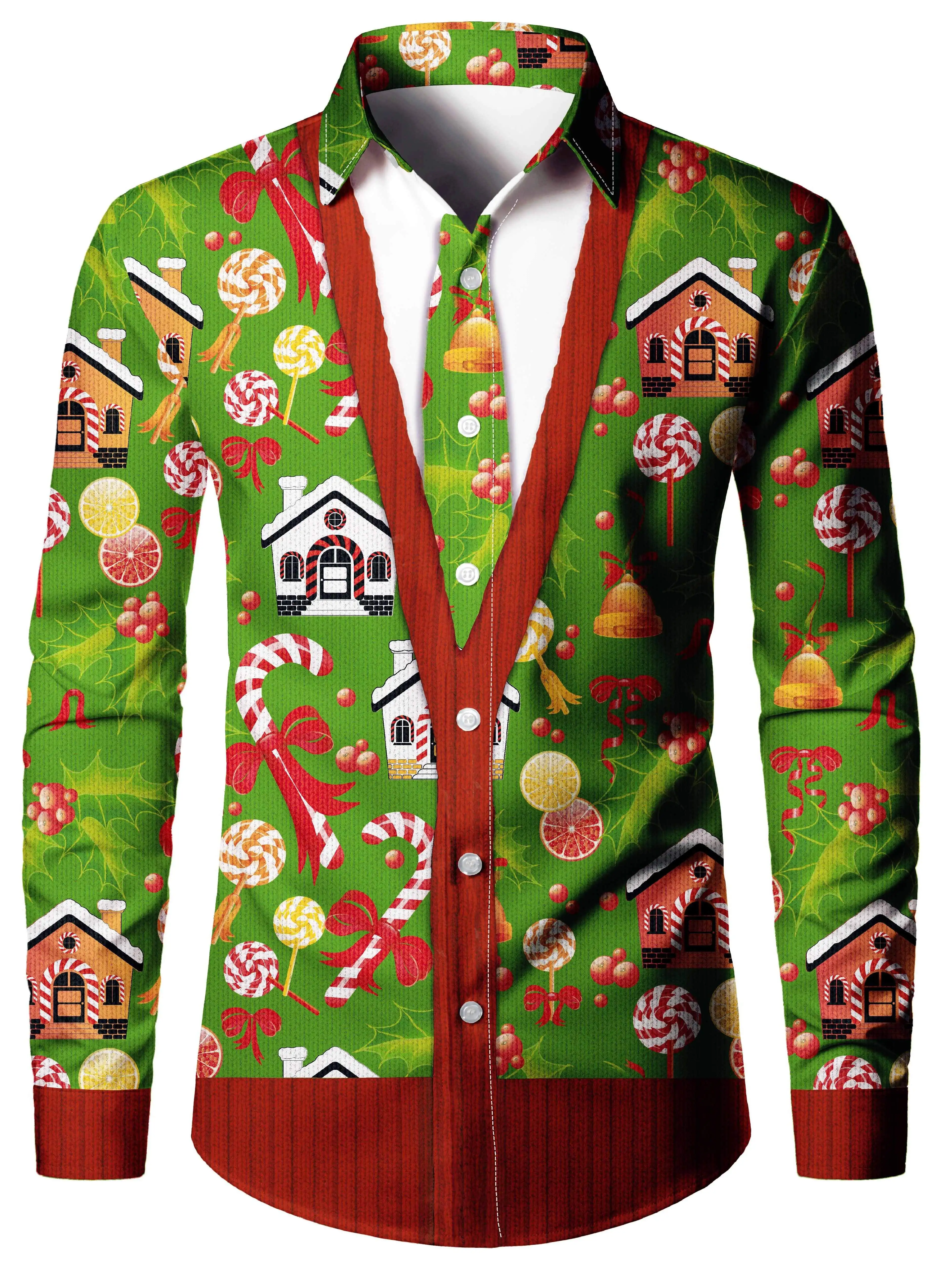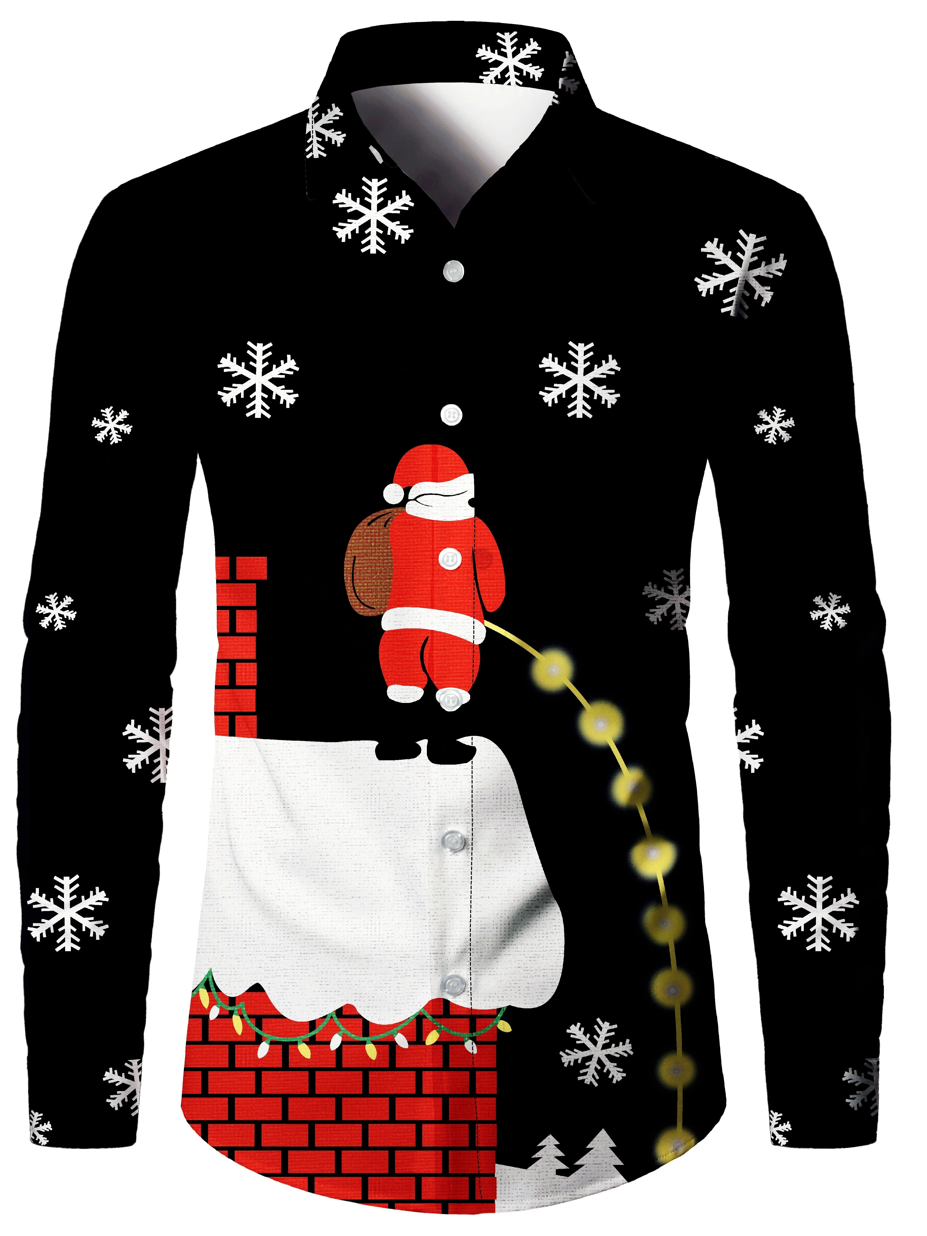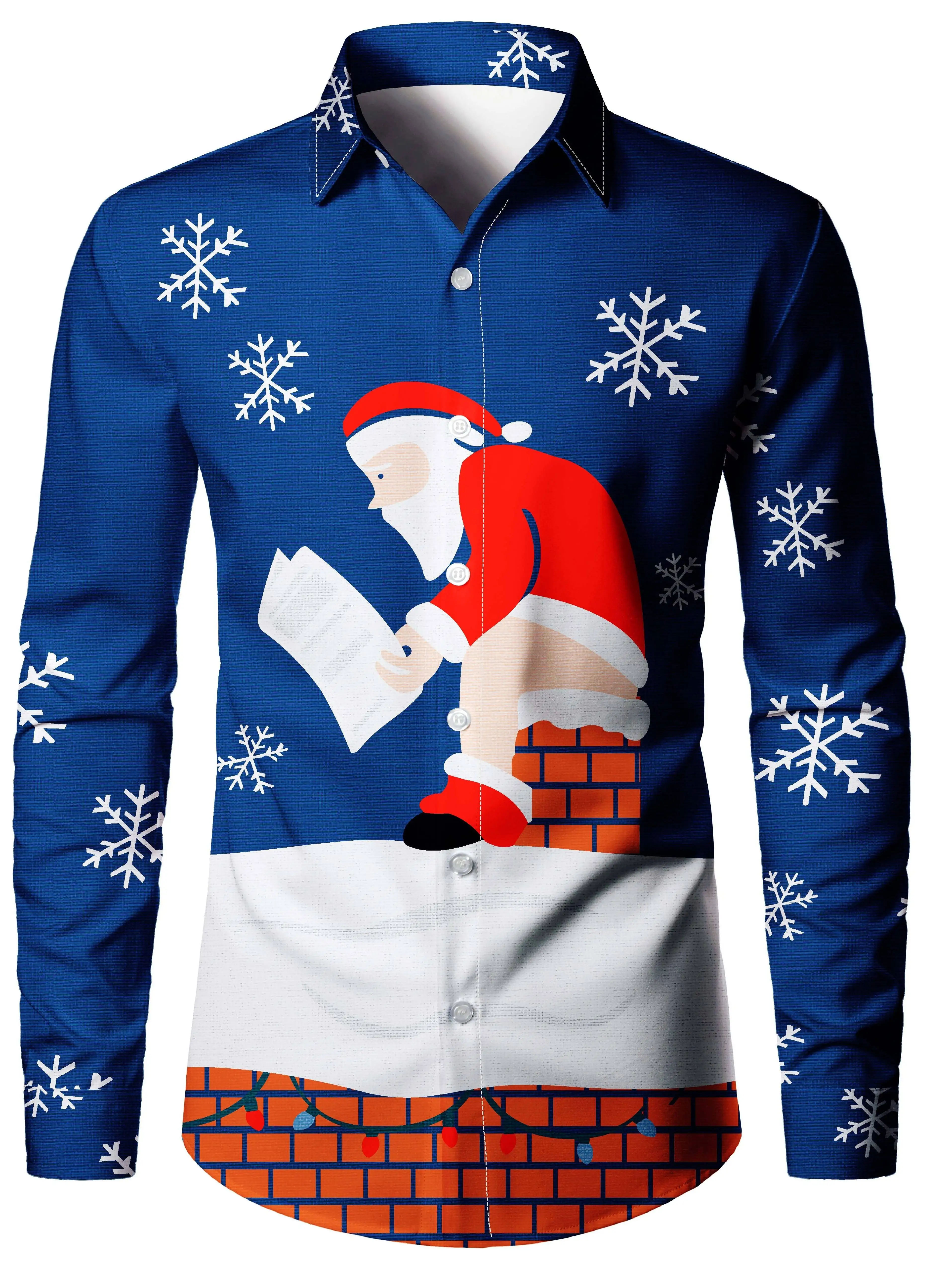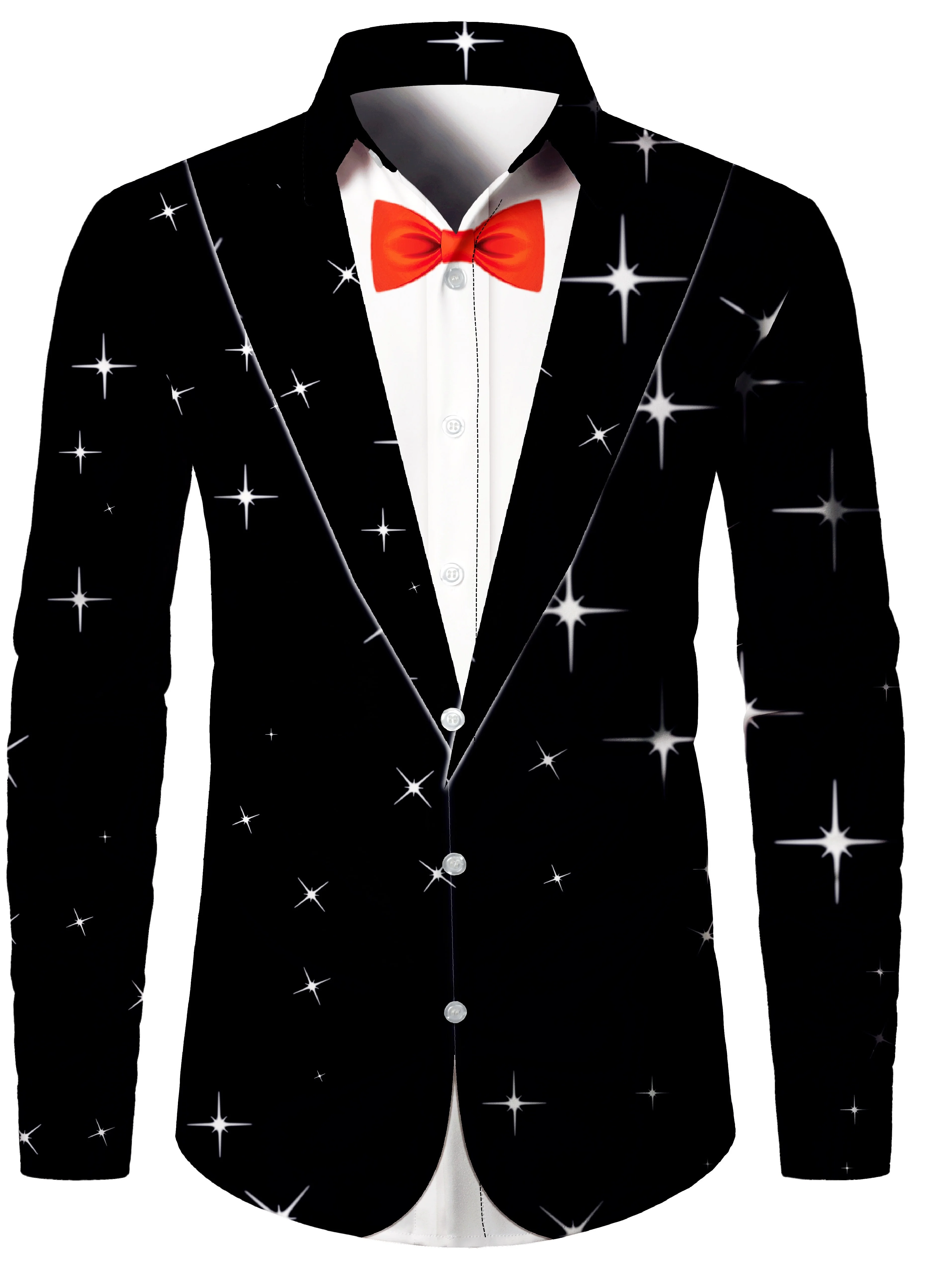 Tema de natal masculino terno falso fraque impresso camisas formais gráficos de natal camisa de manga longa moda camisas masculinas para homem
