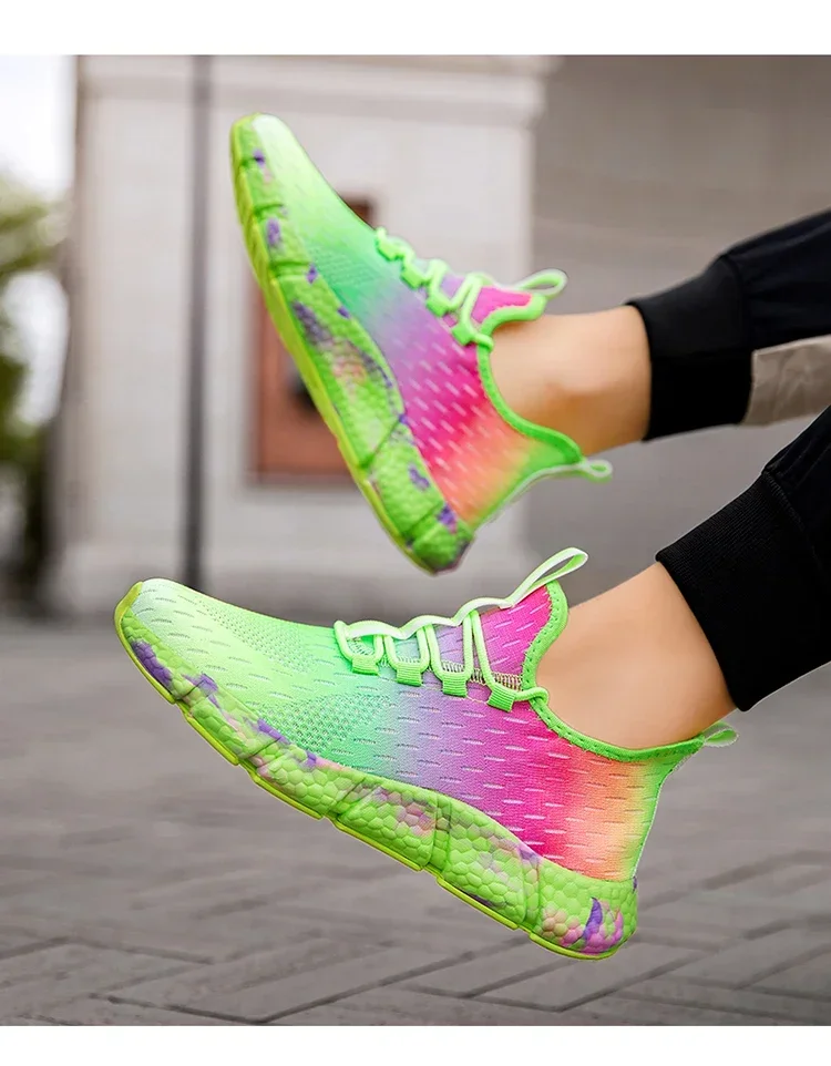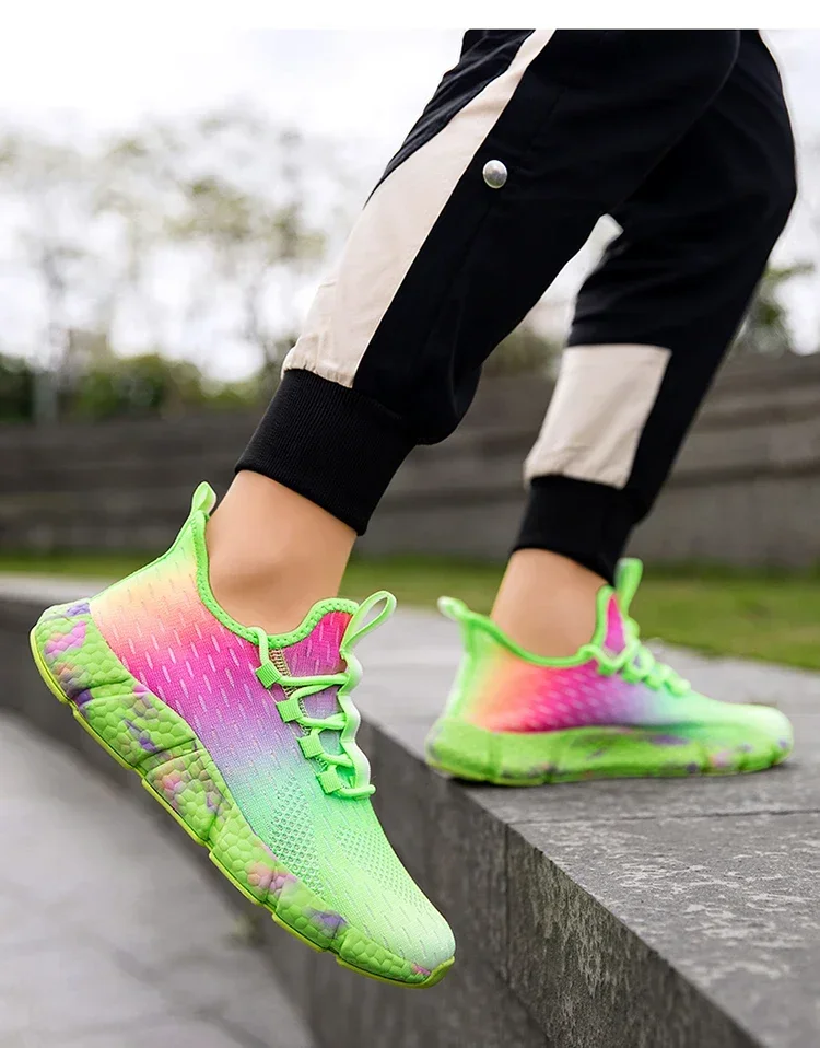 - > Tênis de corrida respirável para homens e mulheres, tênis antiderrapante para casal, calçados casuais para caminhada, calçados coloridos, flexíveis, na moda, 2024