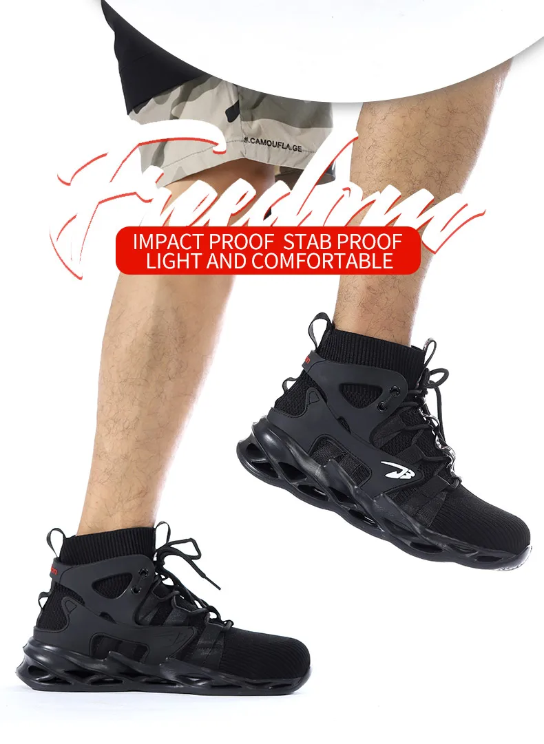 - > Tênis masculinos leves à prova de punção, sapatos de aço, botas indestrutíveis