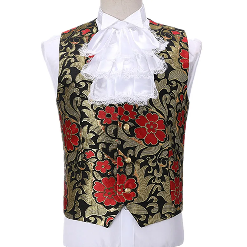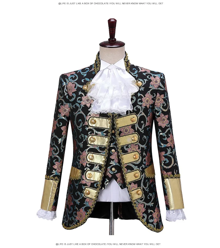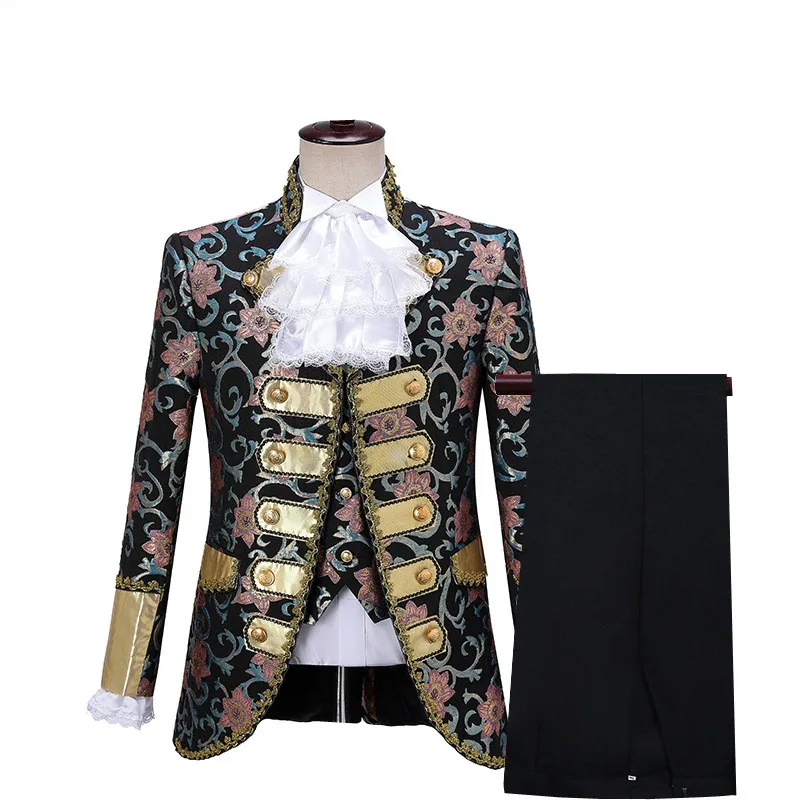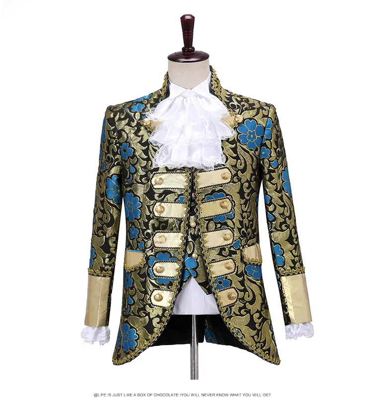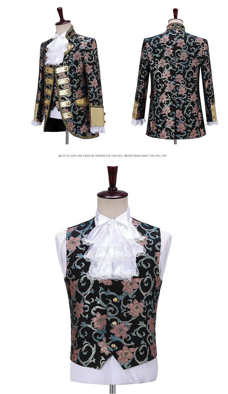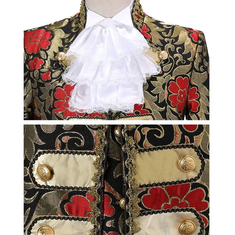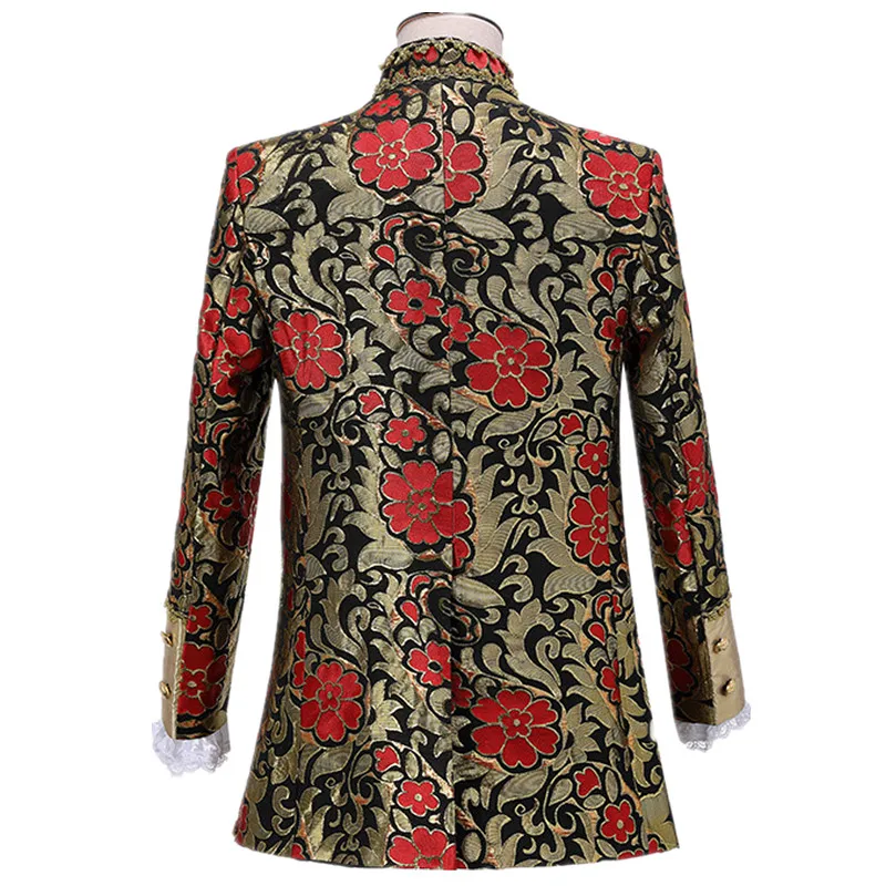 Terno de vestido vintage europeu trespassado vermelho masculino de três peças, conjuntos masculinos azuis, ópera, trajes de performance de palco