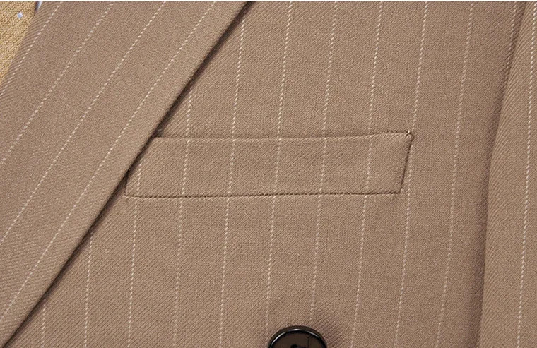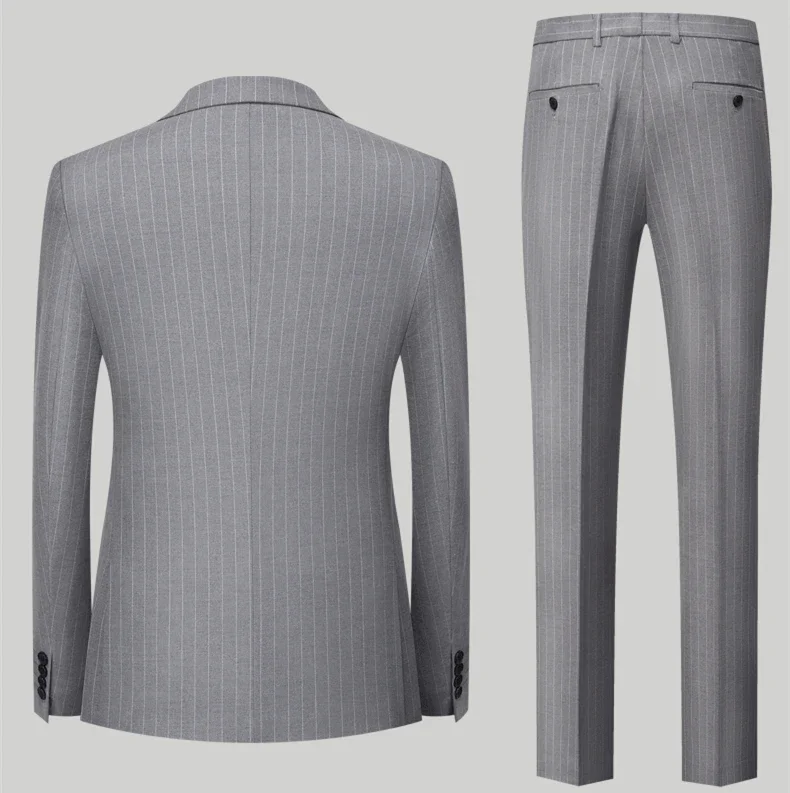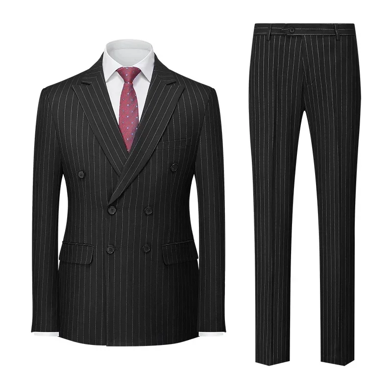 Terno masculino azul listrado trespassado de duas peças, jaqueta e calças para casamento/festa/negócios, conjuntos masculinos de tamanho asiático.