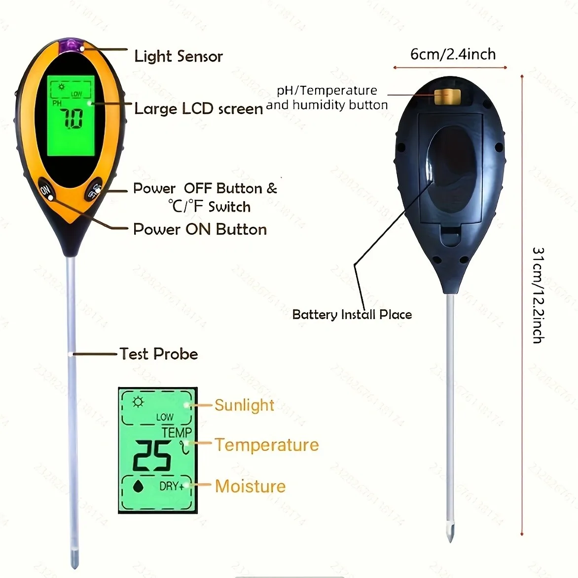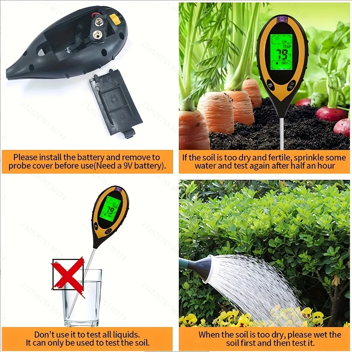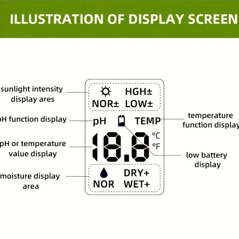 Testador de ph do solo 4 em 1 detector de ph do solo luz umidade fertilidade ph temperatura umidade luz mete jardim para flores