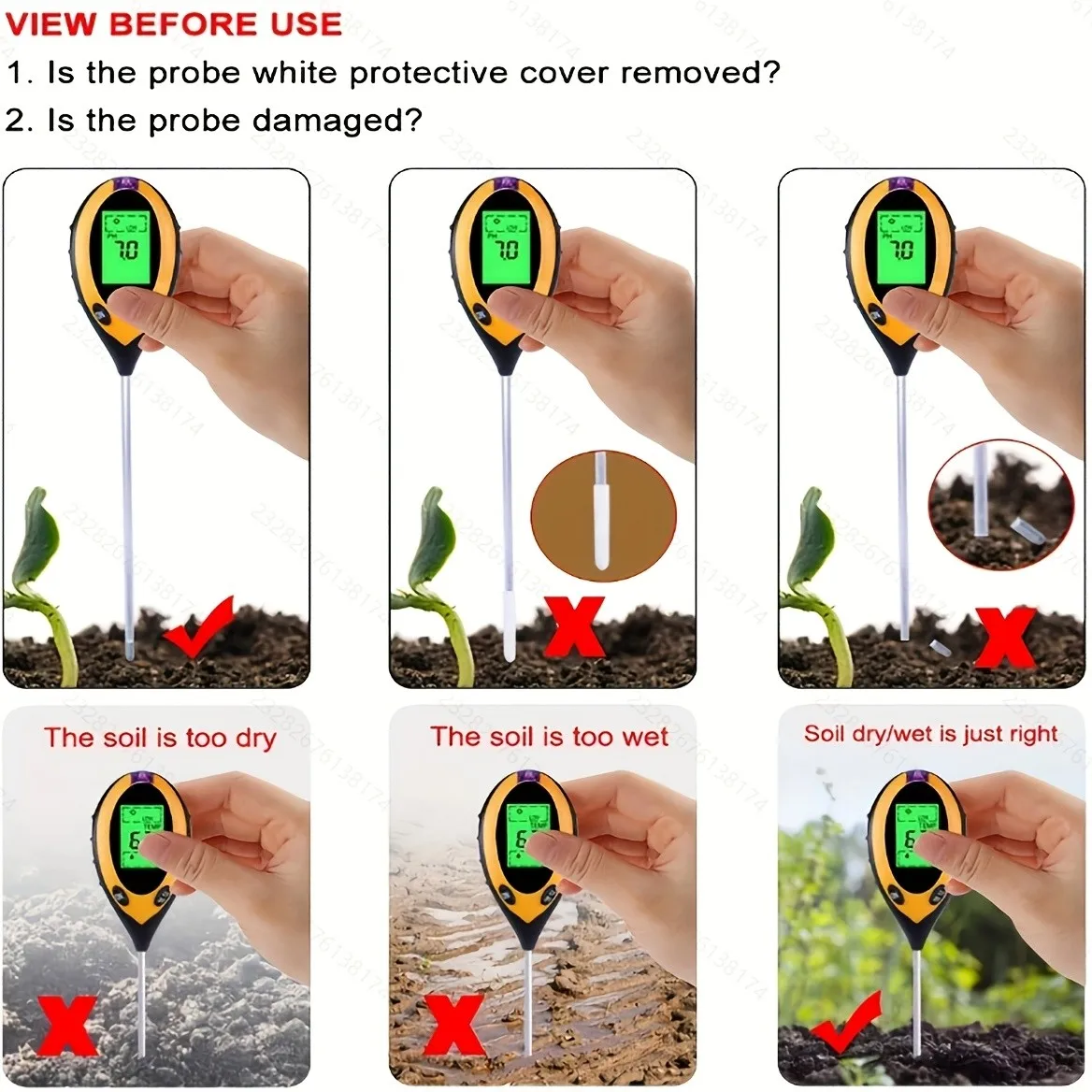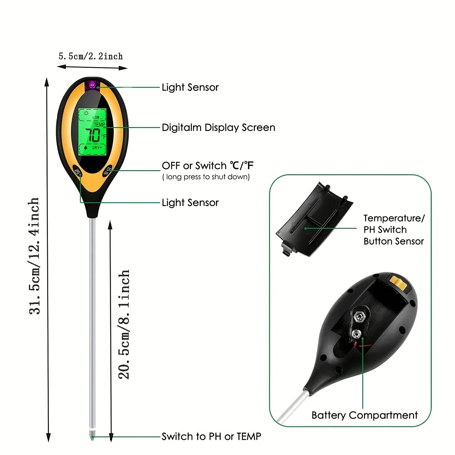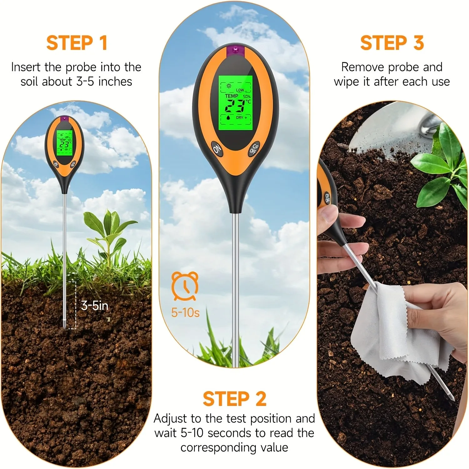 Testador de ph do solo 4 em 1 detector de ph do solo luz umidade fertilidade ph temperatura umidade luz mete jardim para flores